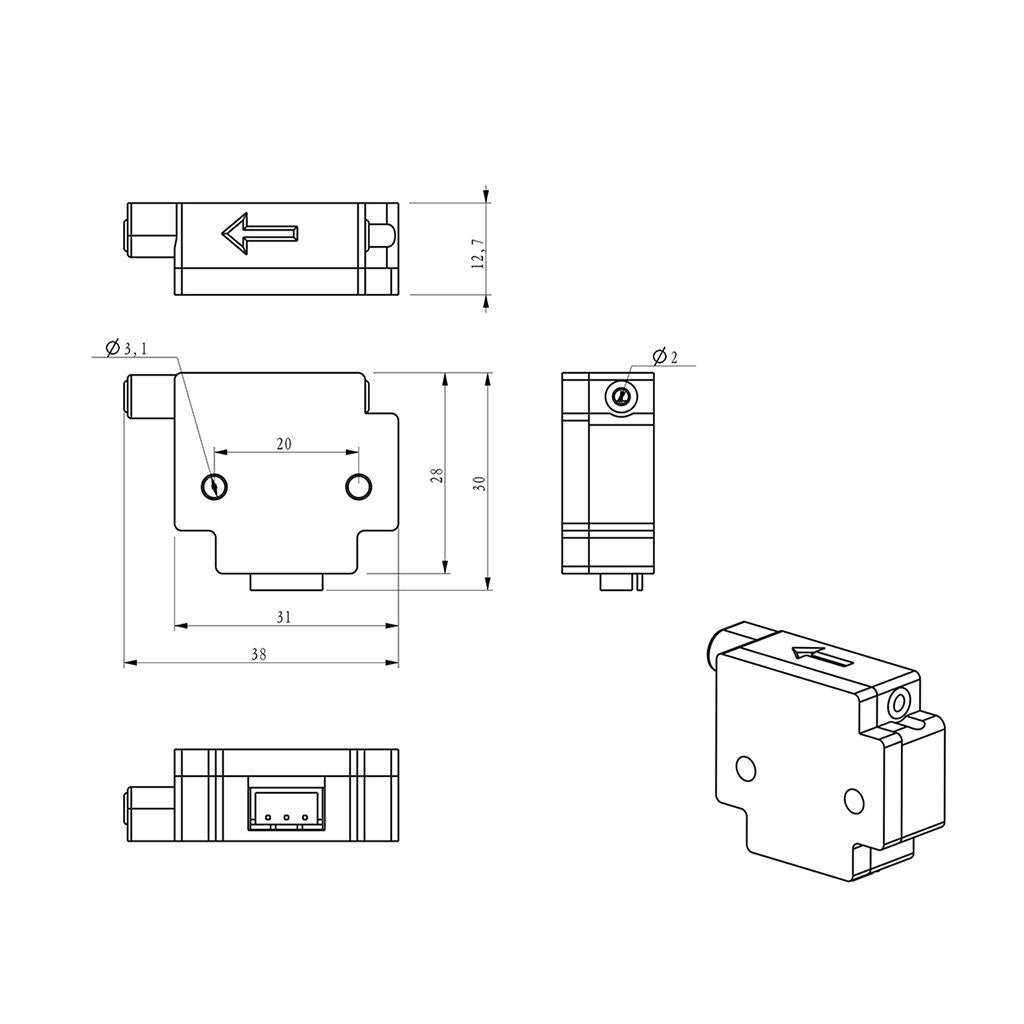 Used for Lerdge board: When there is material in, the green light in the module keeps lighting. when the material is exhausted, the green light goes off,and the motherboard executes the pause command operation, after the replacement of the material, can continue to print.