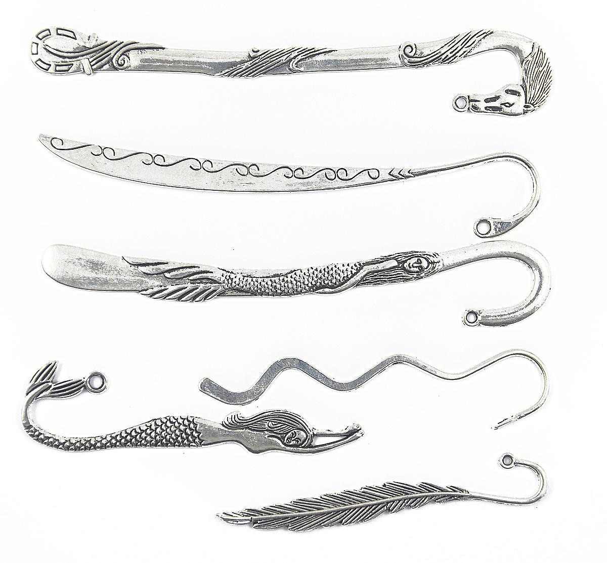 6 assorted styles Antique Silver BookMark With Loop For Jewelry Making Craft