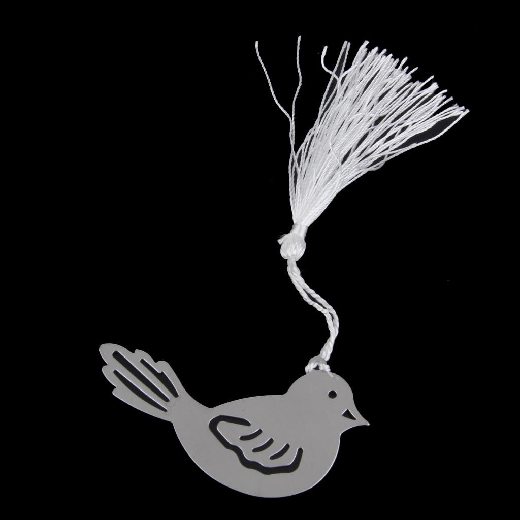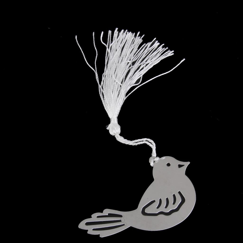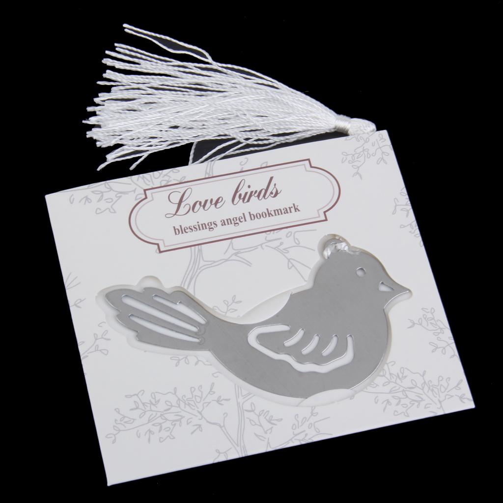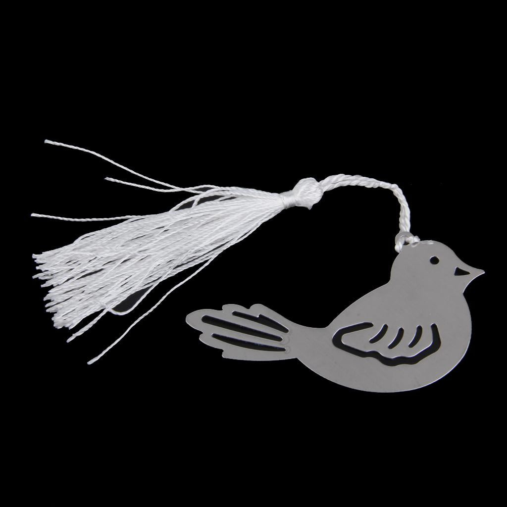 • Silver bird shaped bookmark, topped with an attached white satin tassel