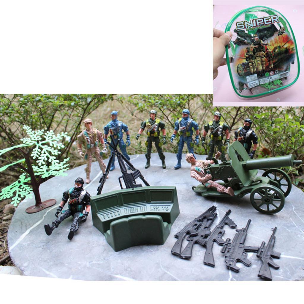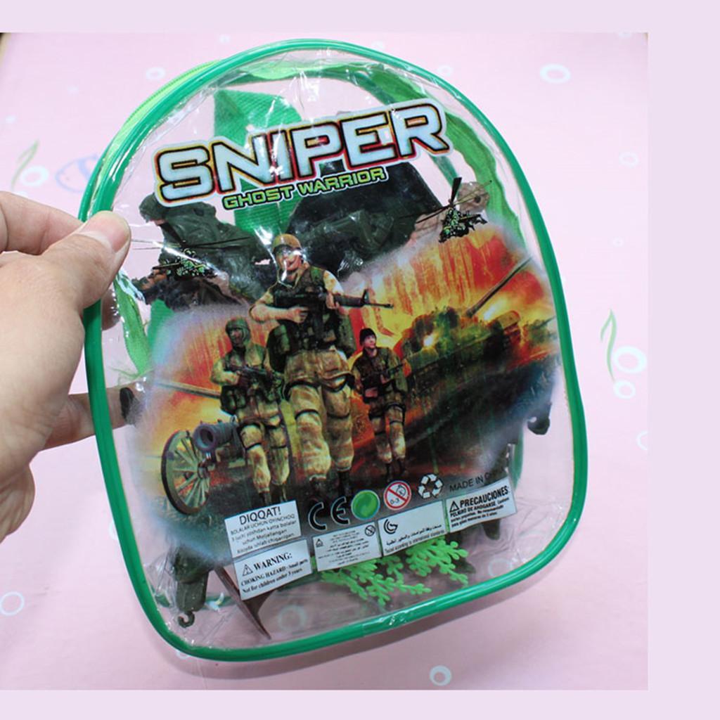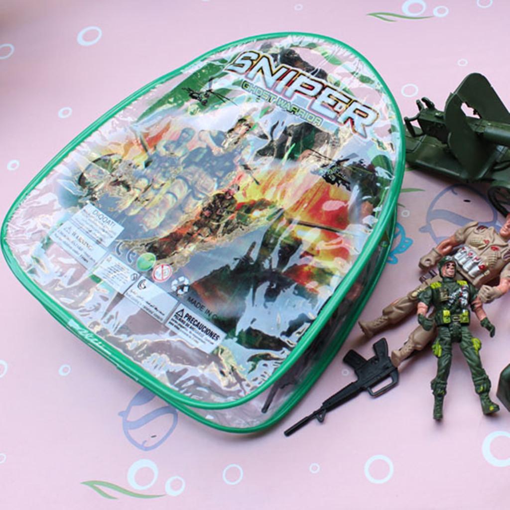 Army Combat Game Toys Soldier Set with Zipper Backpack 9cm
