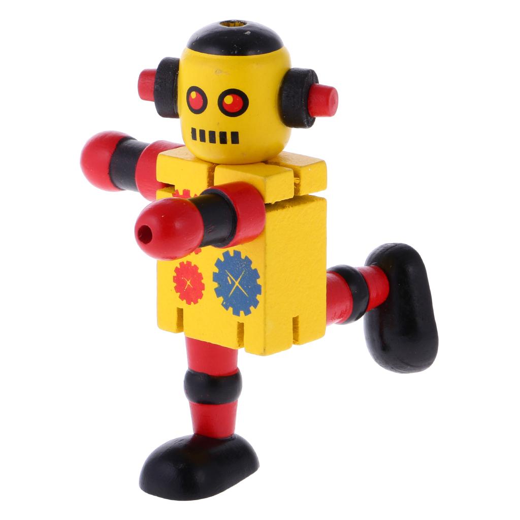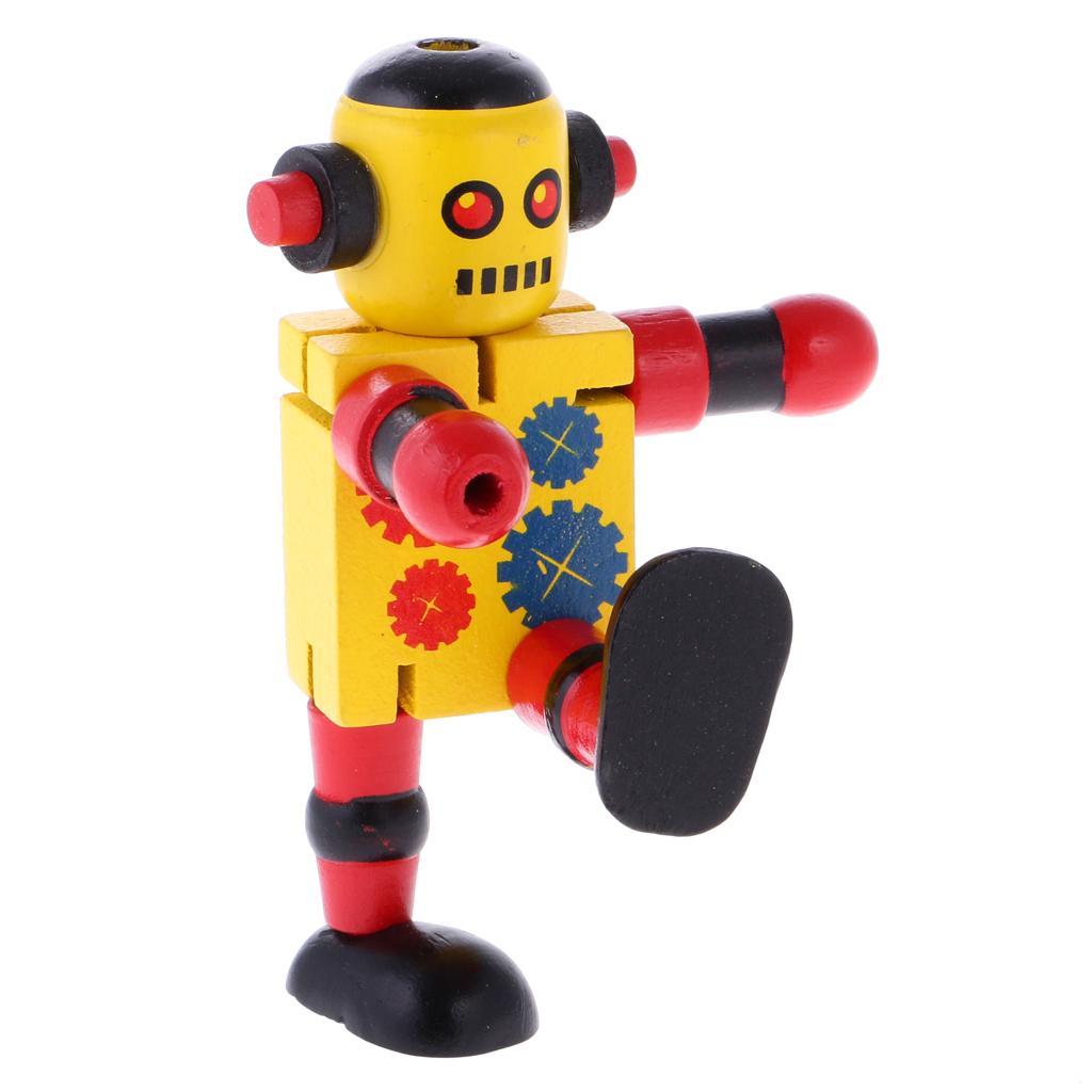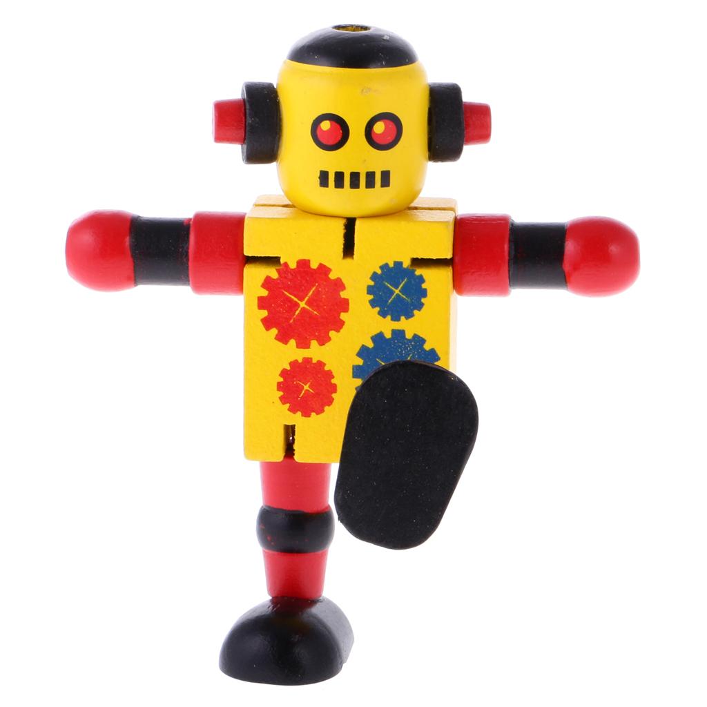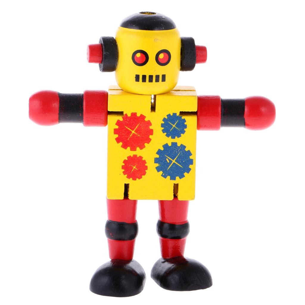 Mini Wooden Walnut Robot Toy Kids Gift Toy Walnut People Decor Yellow