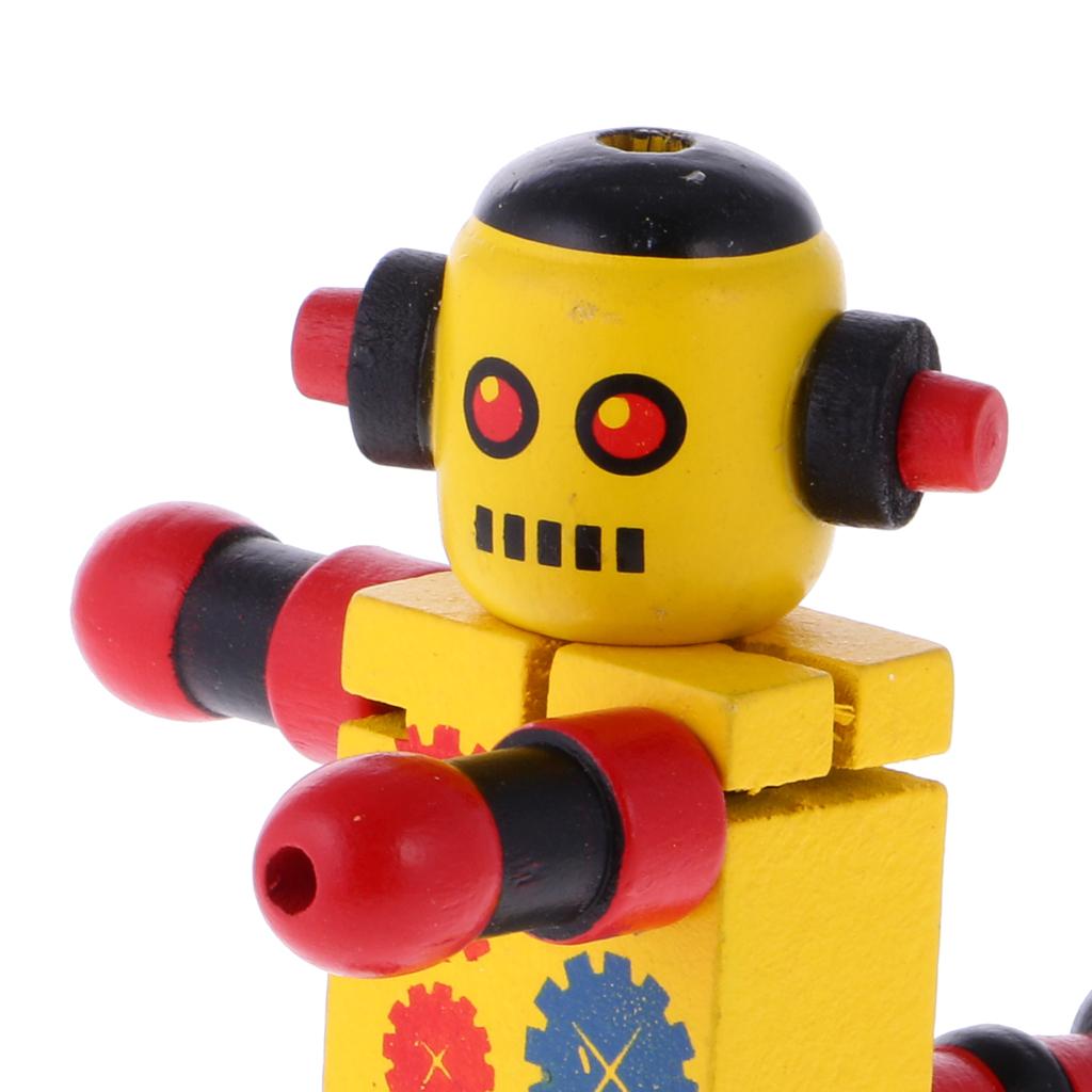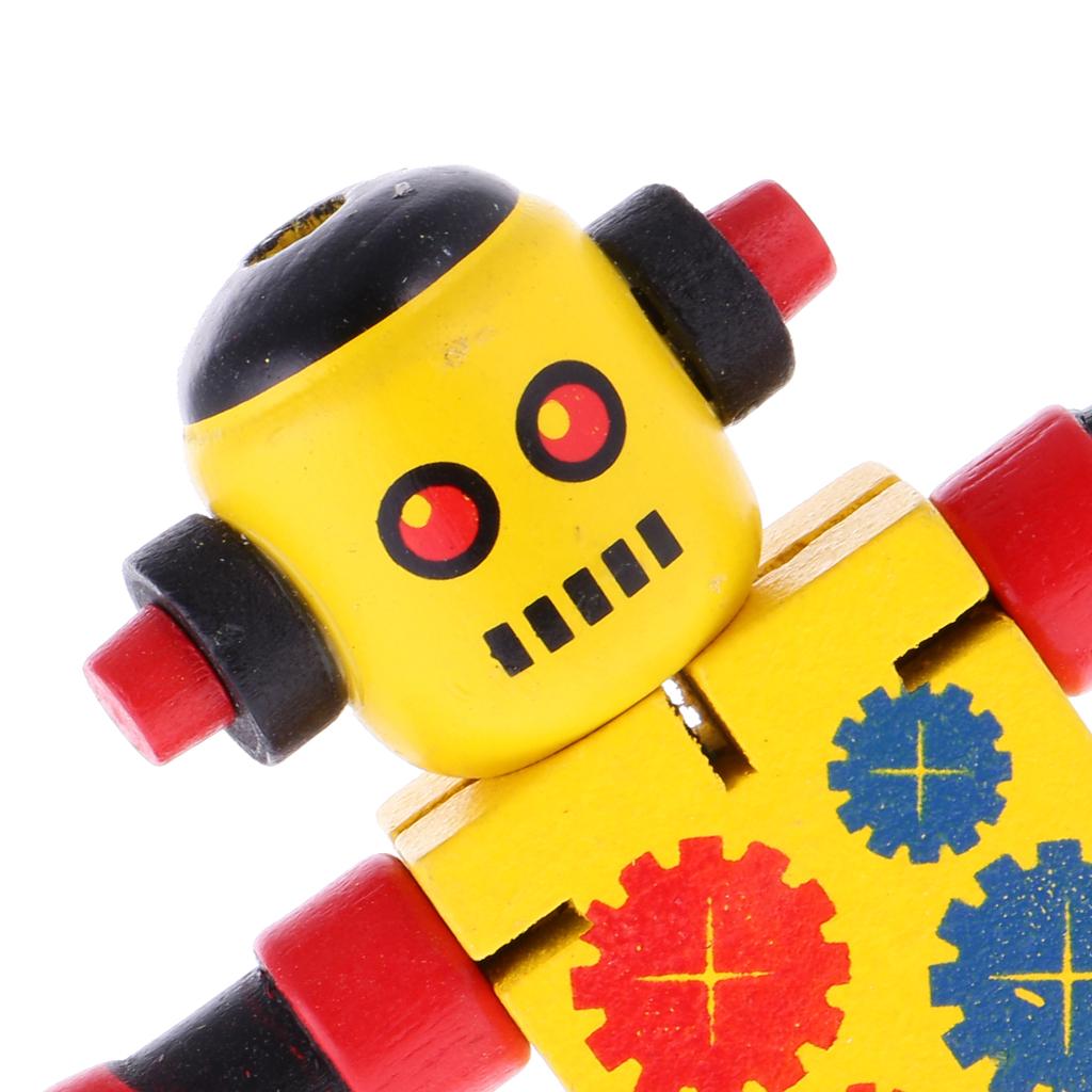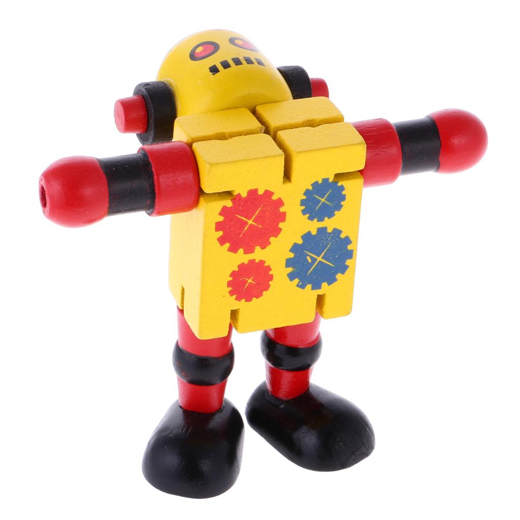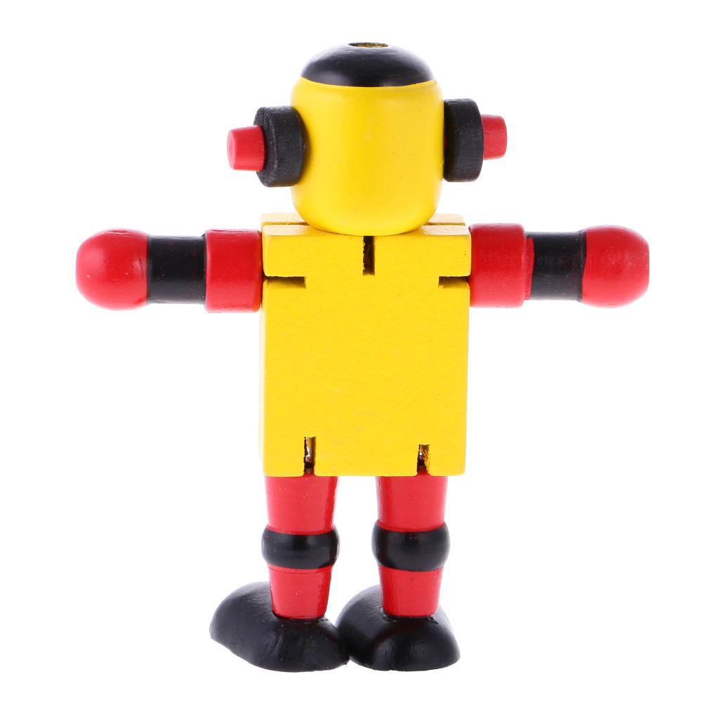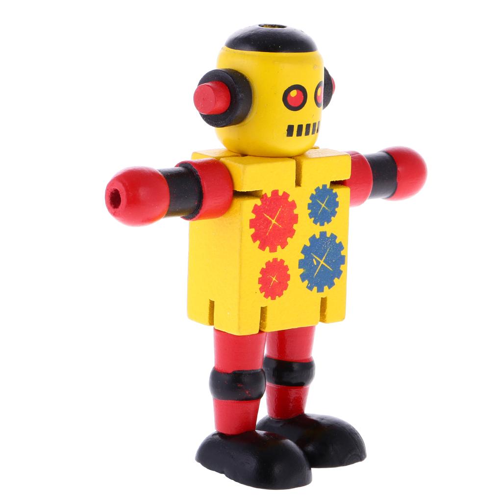Mini Wooden Walnut Robot Toy Kids Gift Toy Walnut People Decor Yellow