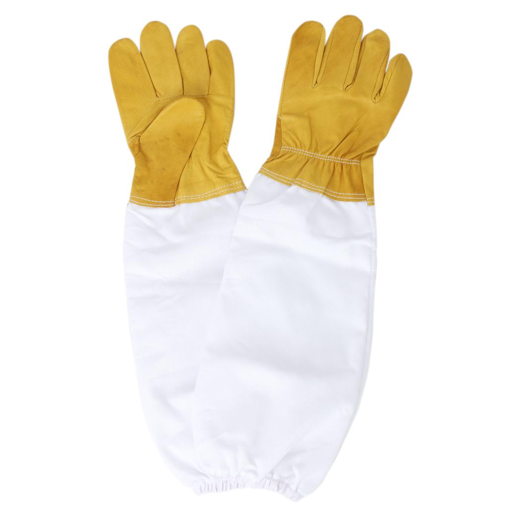 Pair Protective Beekeeping Gloves, Goatskin Bee Keeping with Vented Long Sleeves - Yellow and white