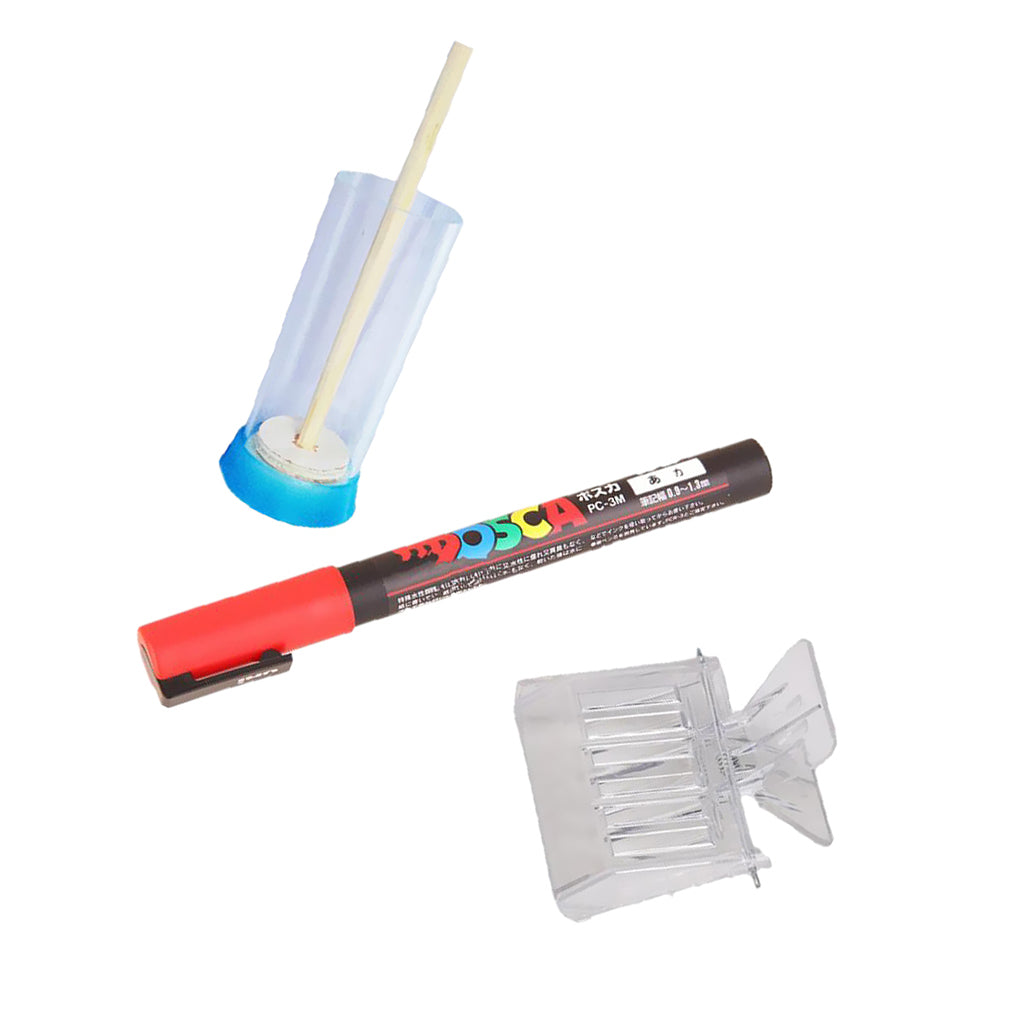 Find the queen and place her inside, gently depress the plunger to hold her against the mesh while marking.