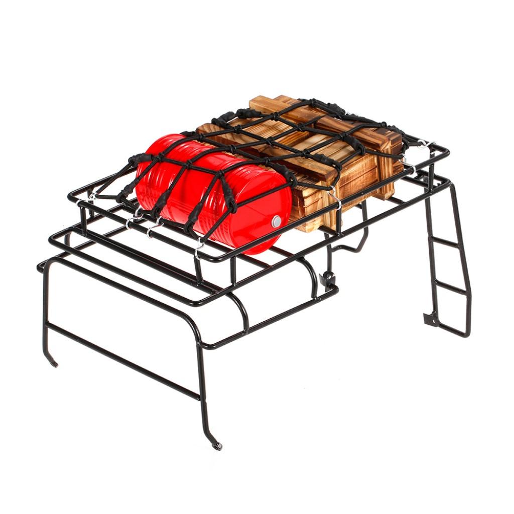 The luggage net is elastic, it can be stretched, and come with hooks, can fix things on the RC car carrier rack