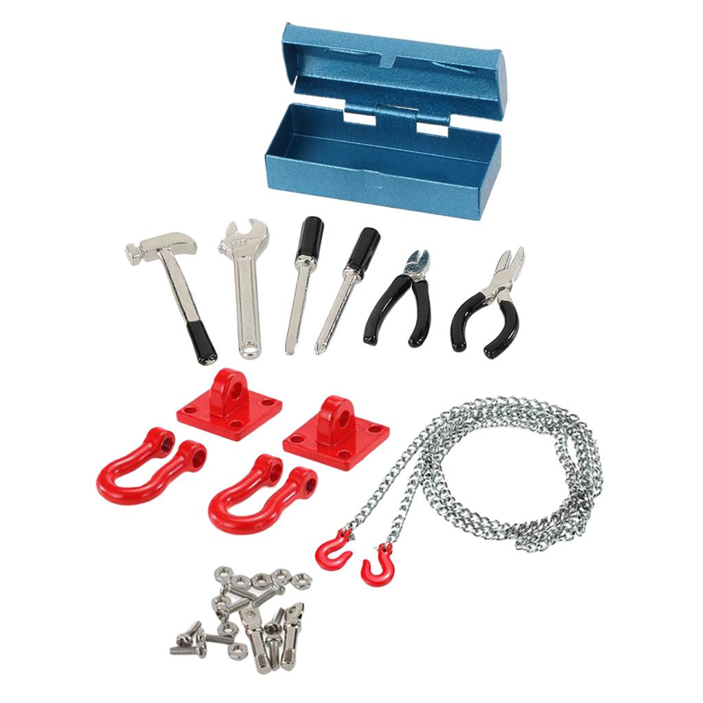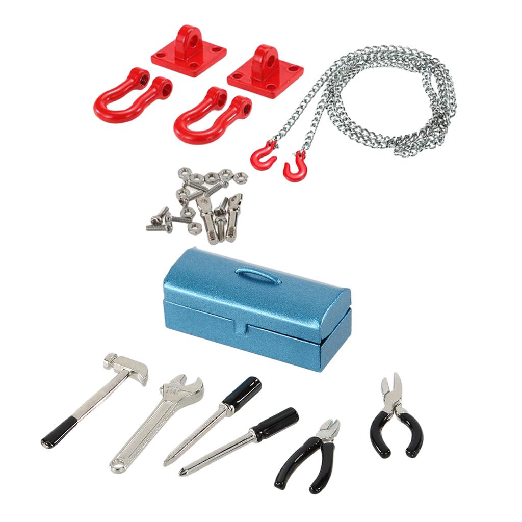 1/10 RC Crawler Accessories Mini repair tool 1 Hammer / 1 Wrench / 2 Screwdrivers / 2 Pliers + Tow Hook Trailer Chain