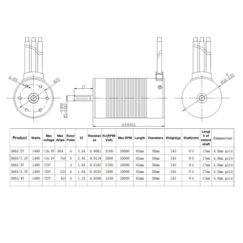 3665 3100KV 4Pole Brushless Waterproof Motor¢5mm