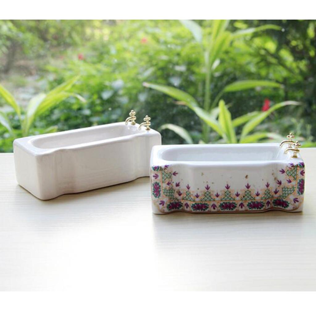 Exquisite Mini Ceramic Bathroom Bathtub for Dolls House Bathroom Decoration Accessory.