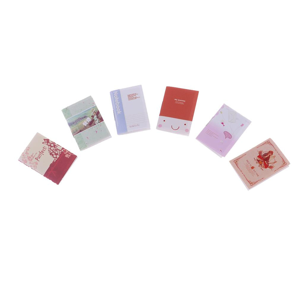 6 pieces 1/12 dollhouse miniature handmade colorful notebooks model for dollhouse decoration.