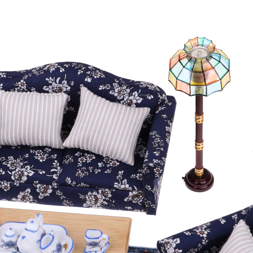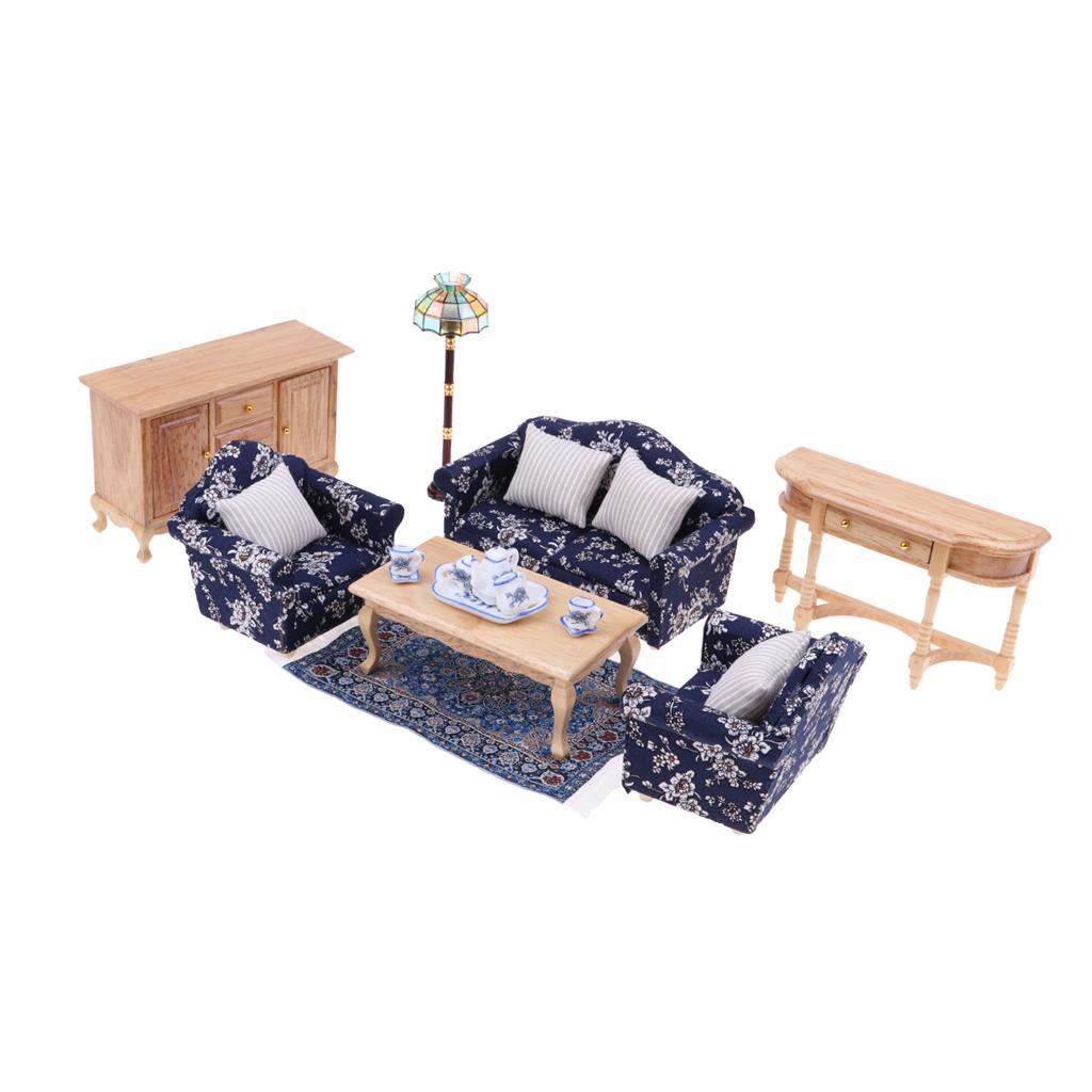 3pieces sofa, 4pieces cushion, 1piece end table, 1piece TV display cabinet, 1piece side cabinet, 8pieces tea set, 1piece floor lamp kids pretend play toys