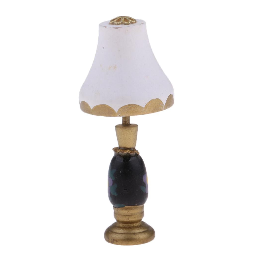 1/12 Dollhouse Miniature Furniture White Lampshade Table Lamp Light Model