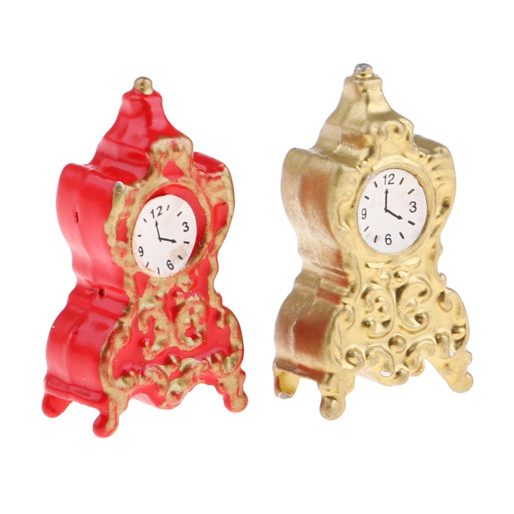 Vintage dollhouse miniature furniture wooden desk table clock model toy