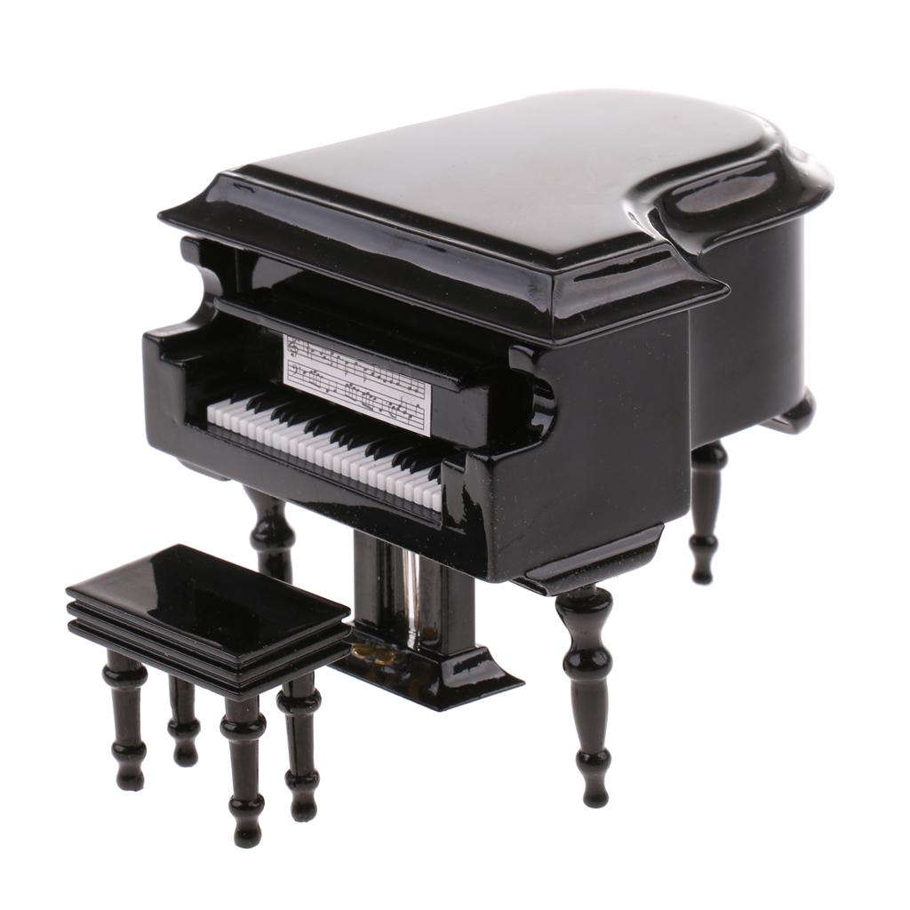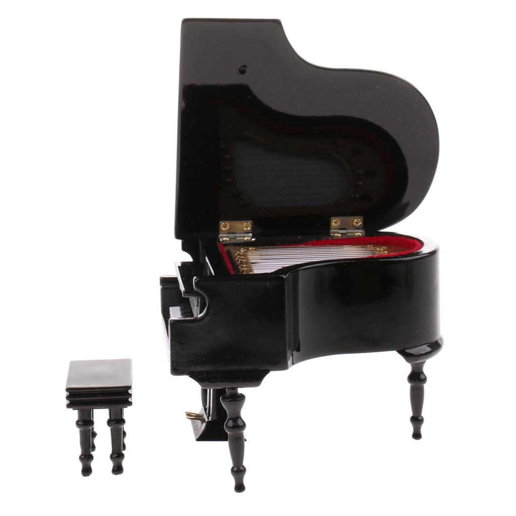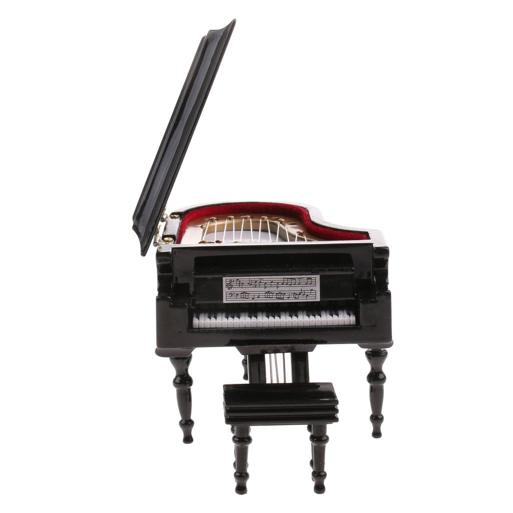 1/12 Scale Miniature Wood Piano Music Instrument Model with Stool and Box