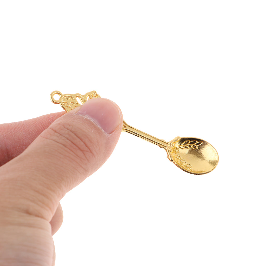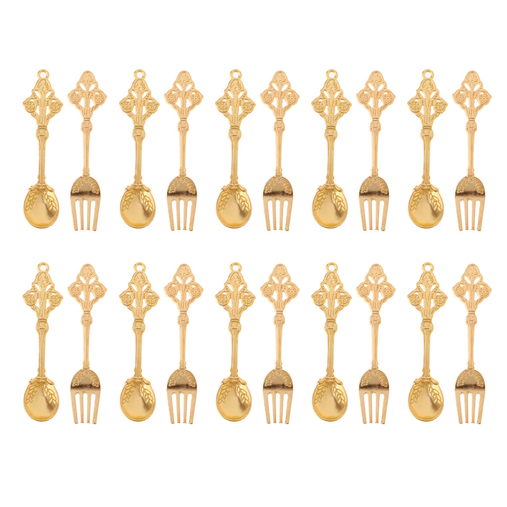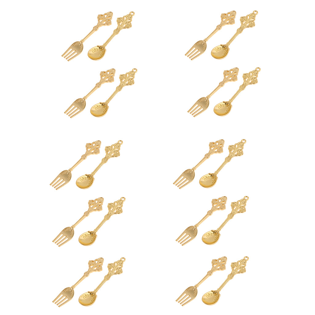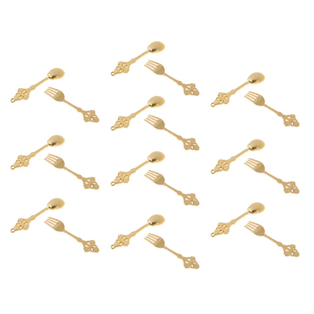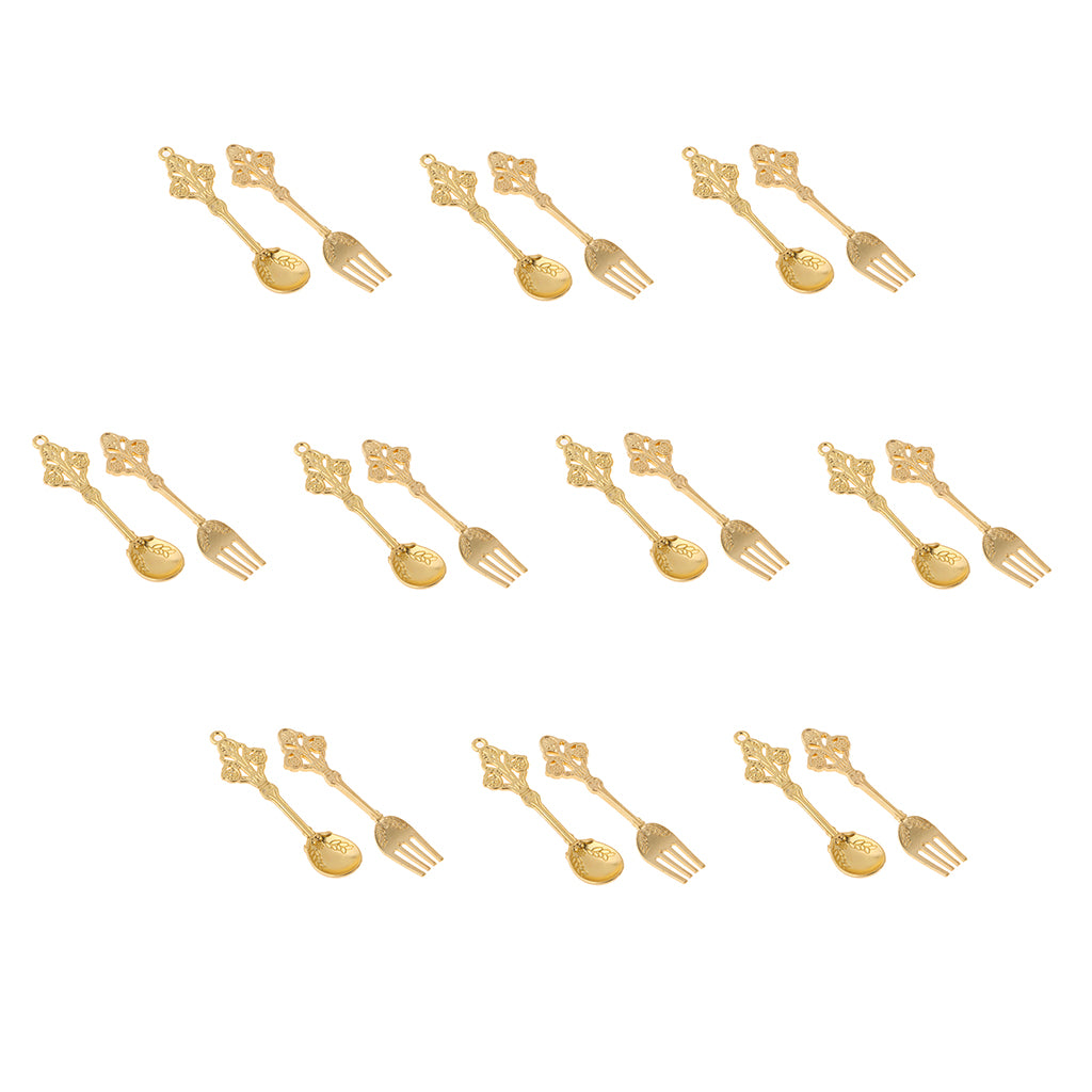 10 Pairs Golden Alloy Miniature Spoon Fork Set Tableware for Dolls House Kitchen Dining Table Accessories.