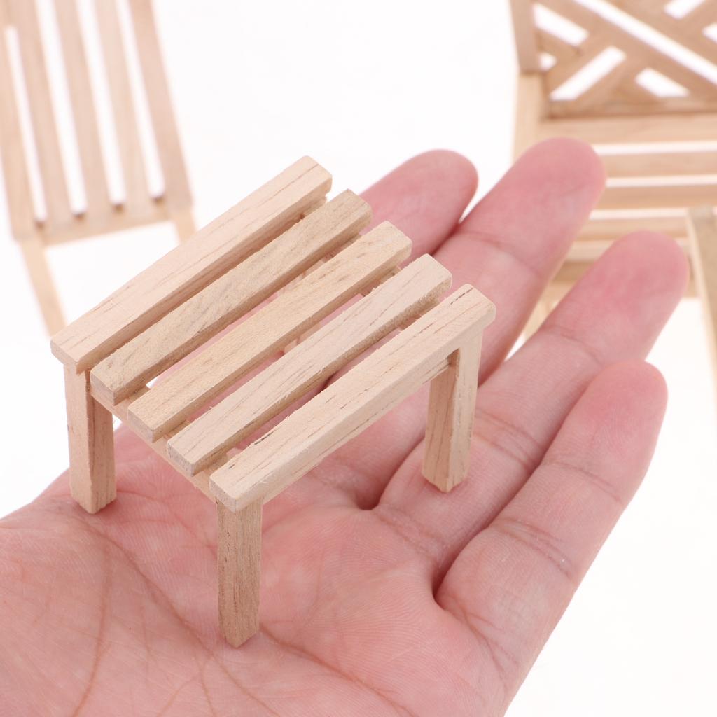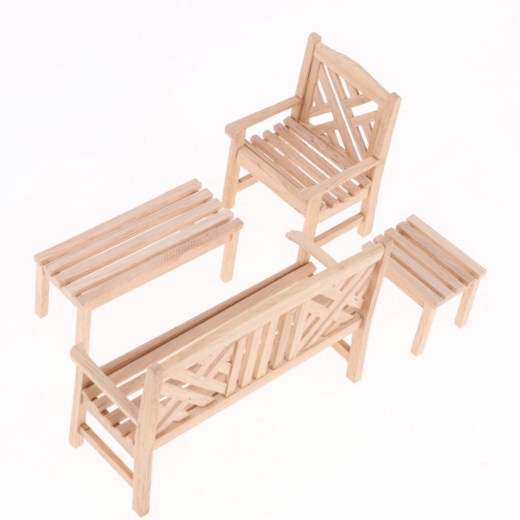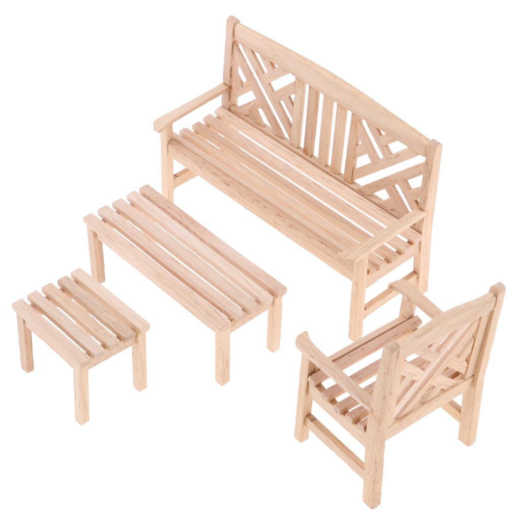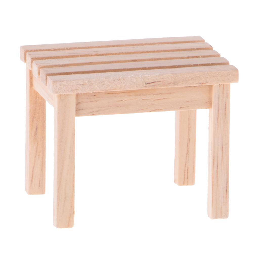 1/12 Scale Miniature Wood End Table Bench Chair Set Unpainted Furniture for Dollhouse Room Accessories Garden Decor