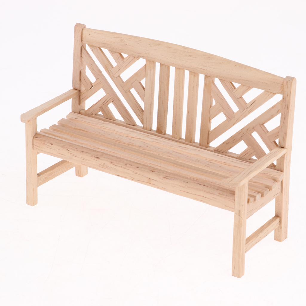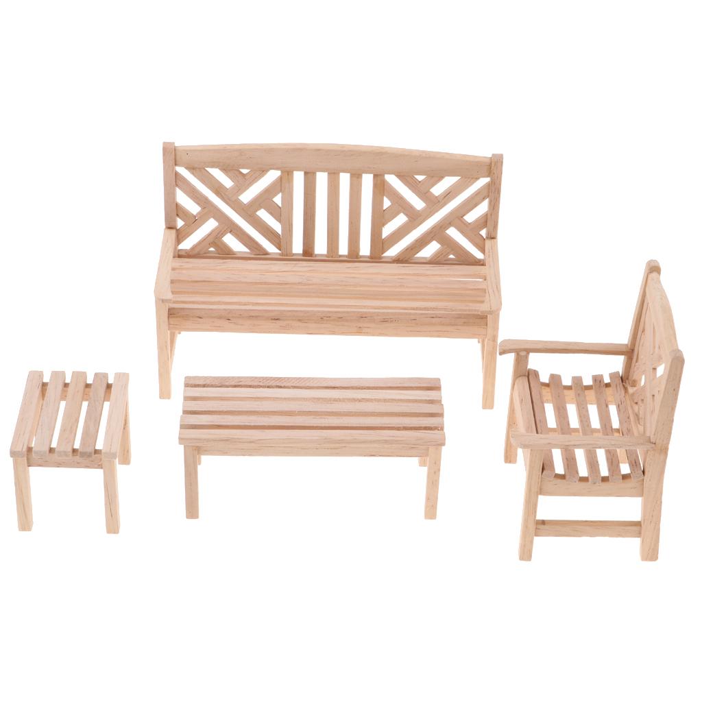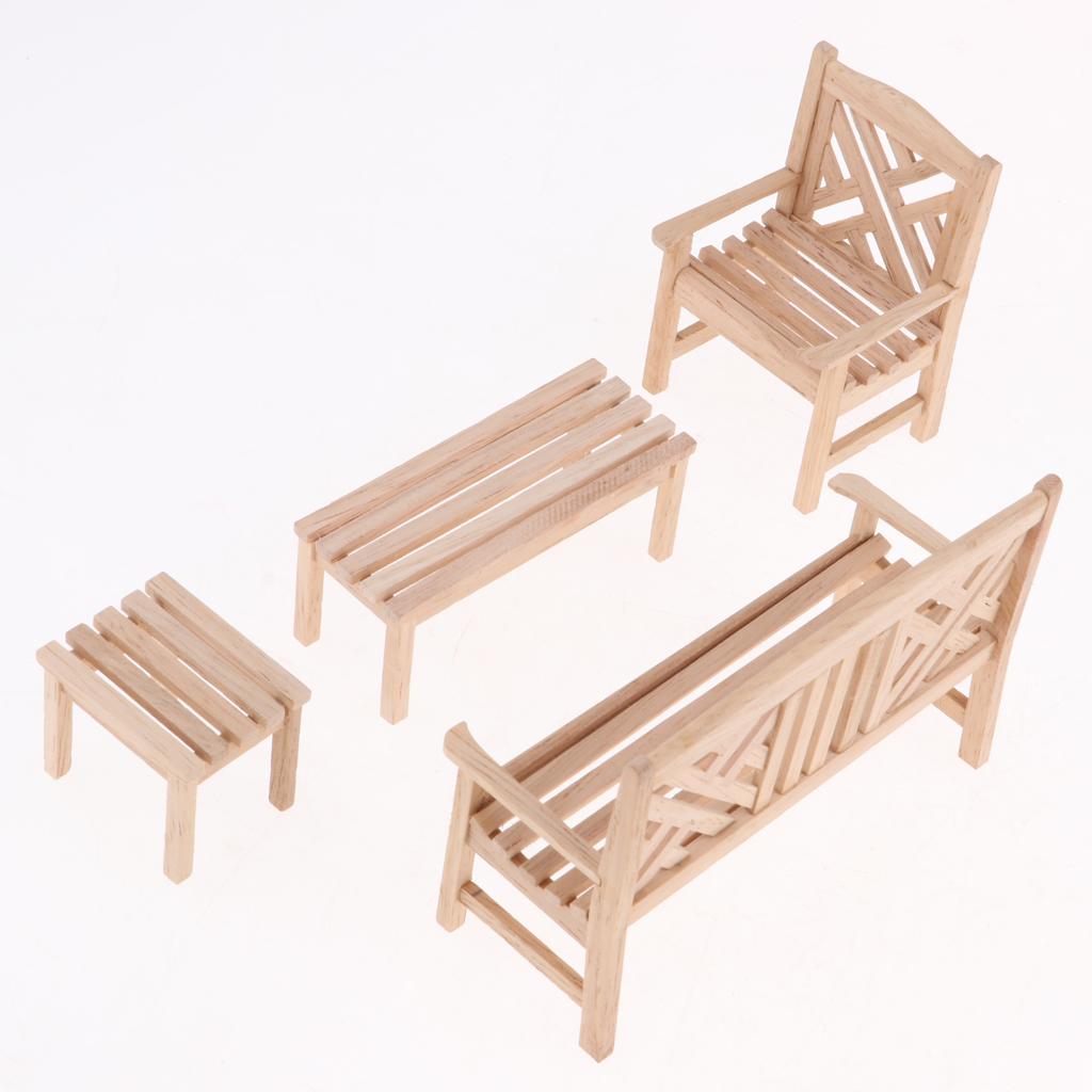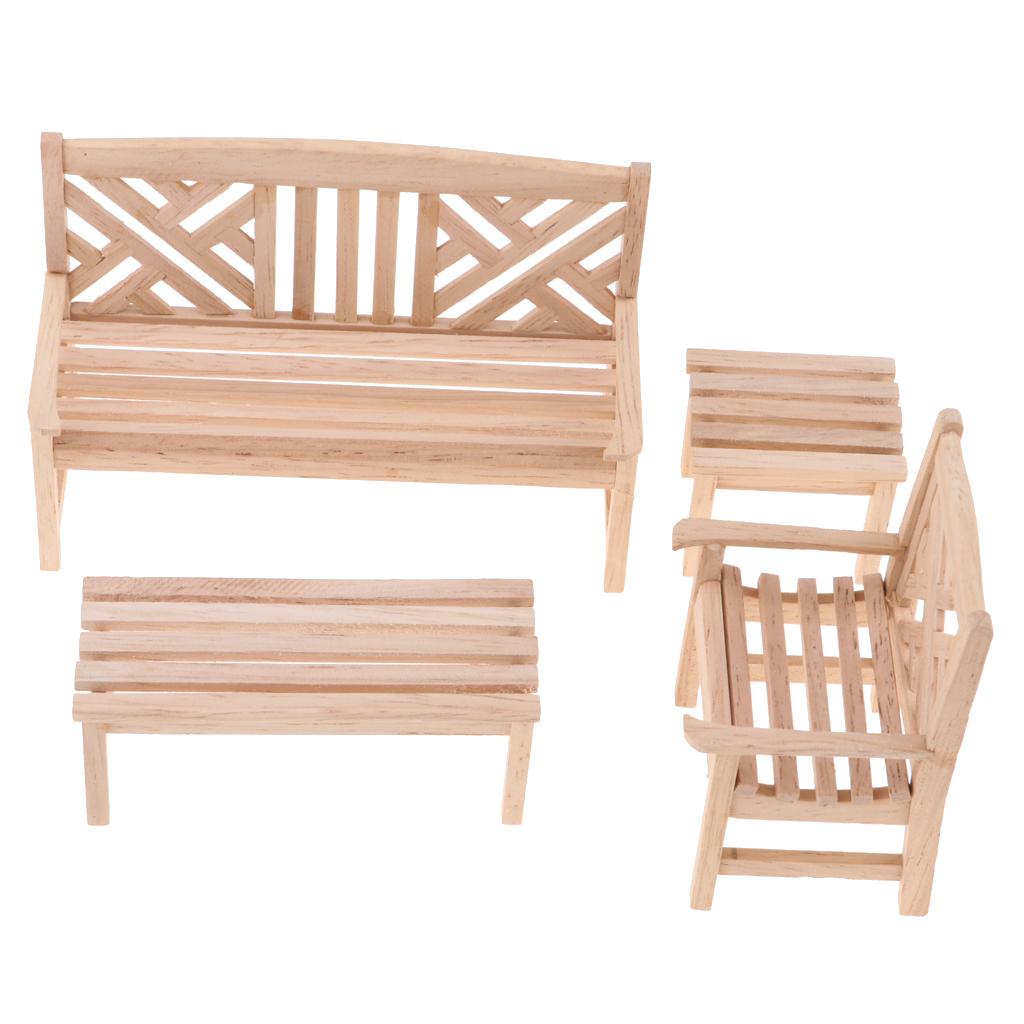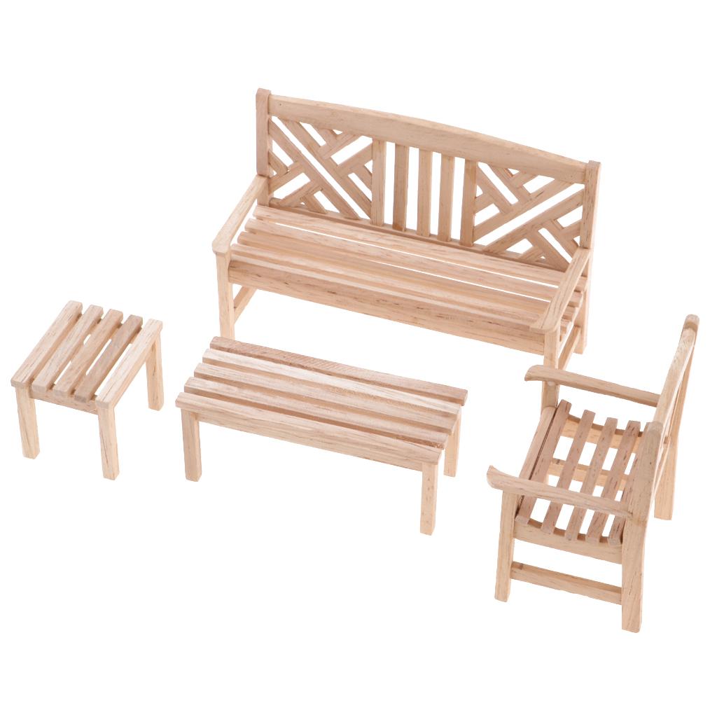 1/12 Scale Miniature Wood End Table Bench Chair Set Unpainted Furniture for Dollhouse Room Accessories Garden Decor
