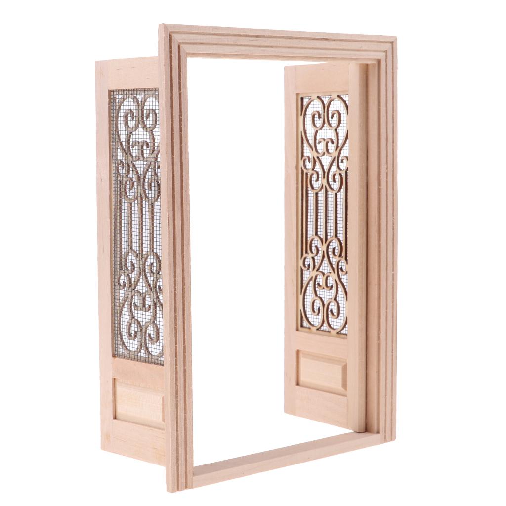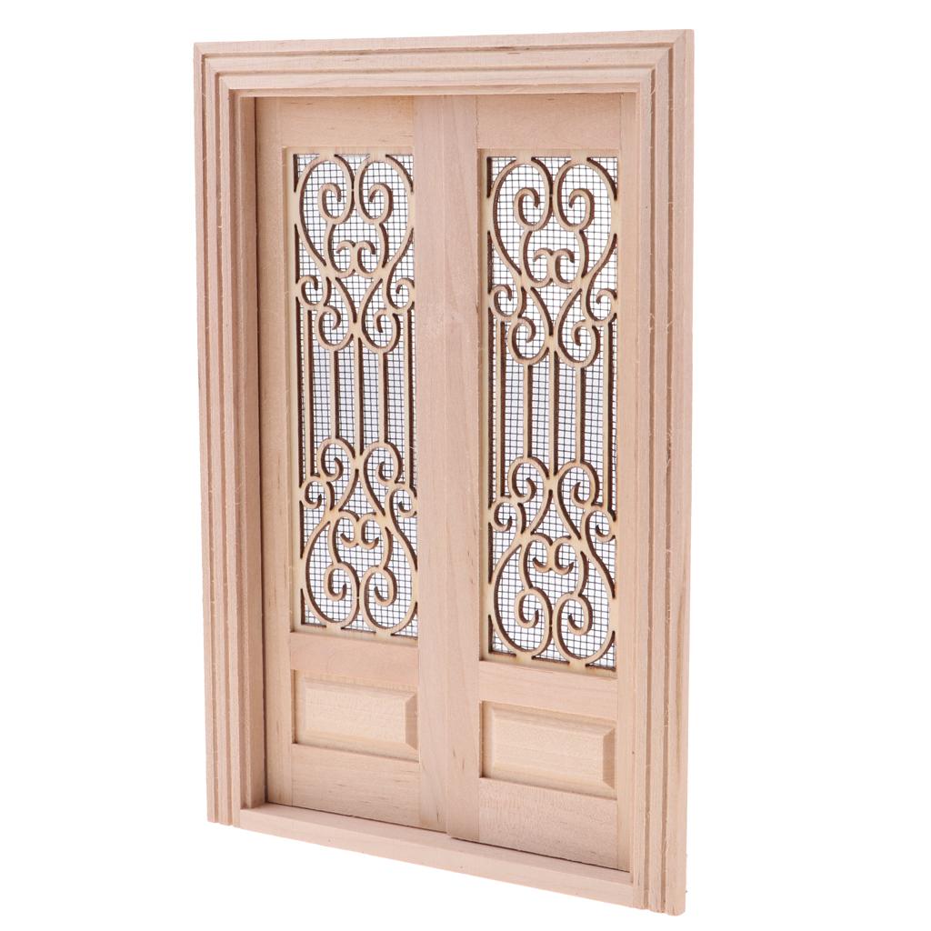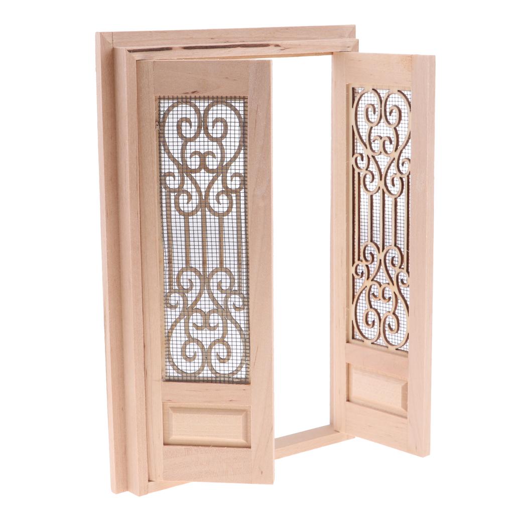 1/12 Scale Miniature Wood External Hollow Screen Double Door Unpainted Furniture for Dolls House Accessory