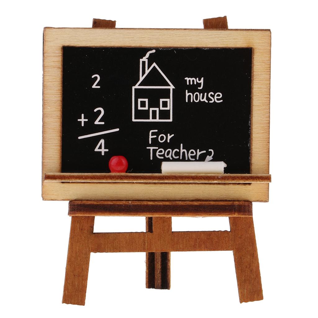 Miniature Blackboard Chalkboard with Chalk Eraser Stand Model for Dollhouse DIY Accessories
