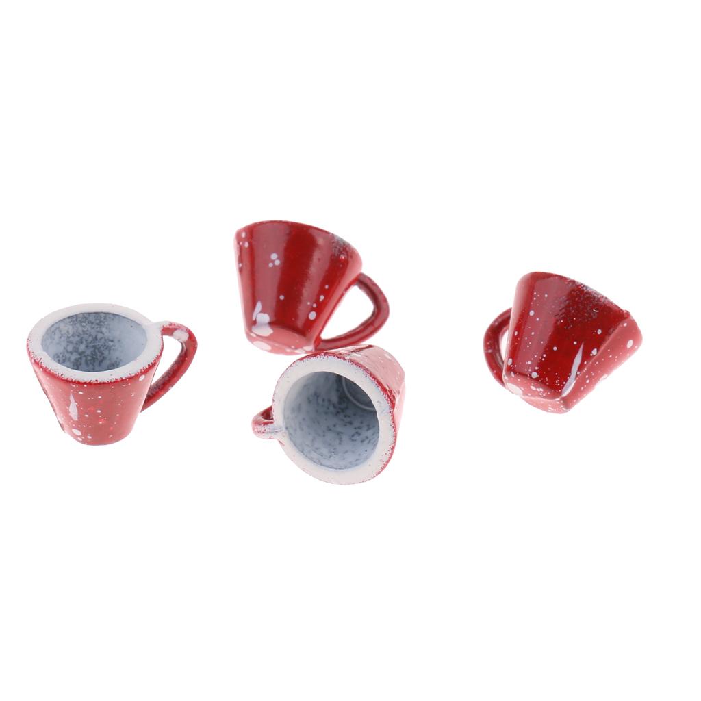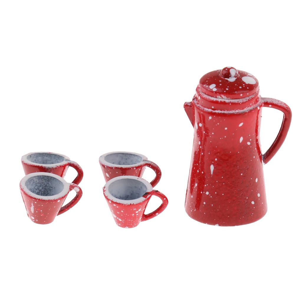 1/12 Scale Chinese Porcelain Coffee Tea Set Dollhouse Miniature Tableware Cookware Furniture Decoration Red