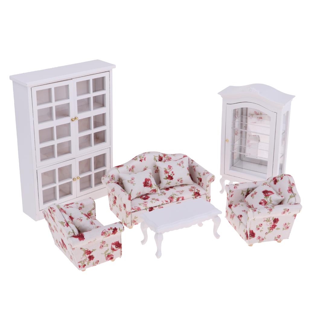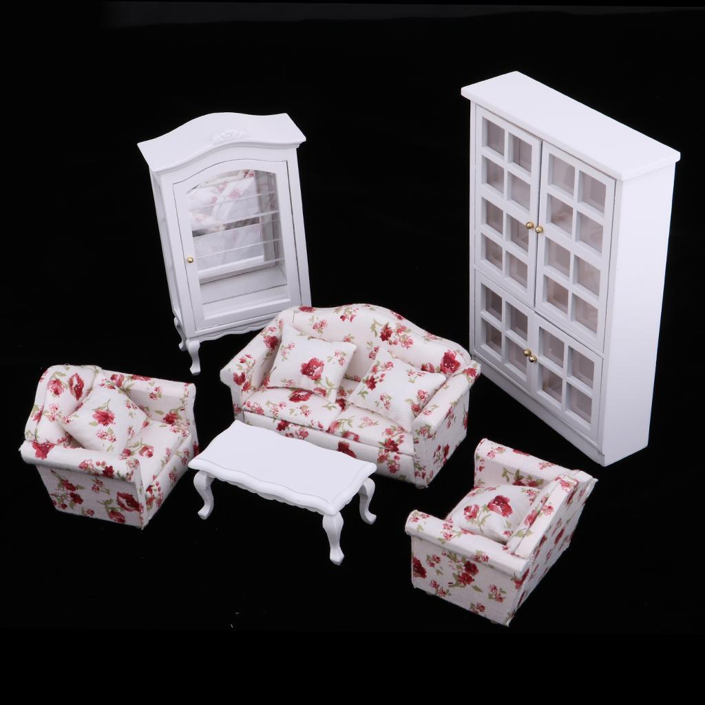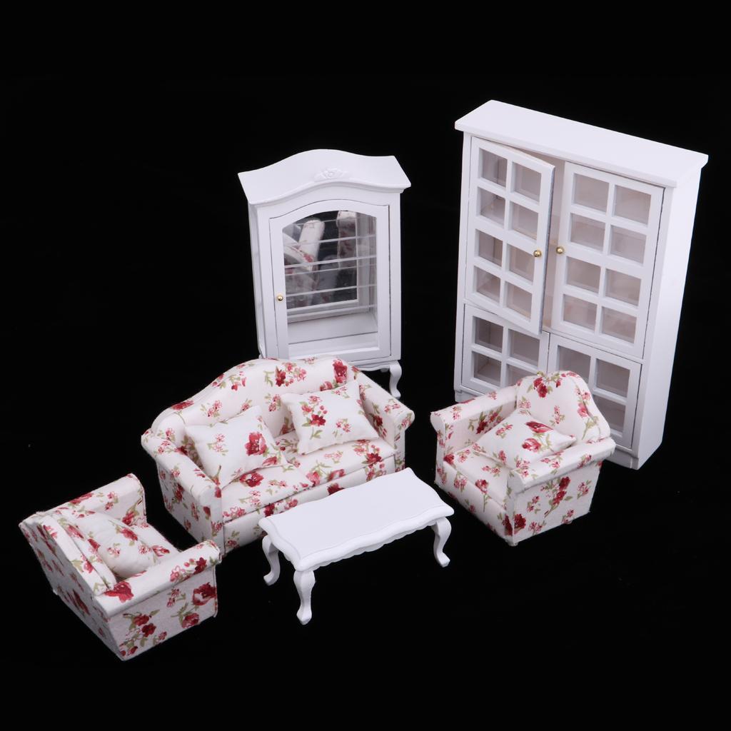 1 Set Dollhouse Furniture(Sofa, End Table and Cabinet)