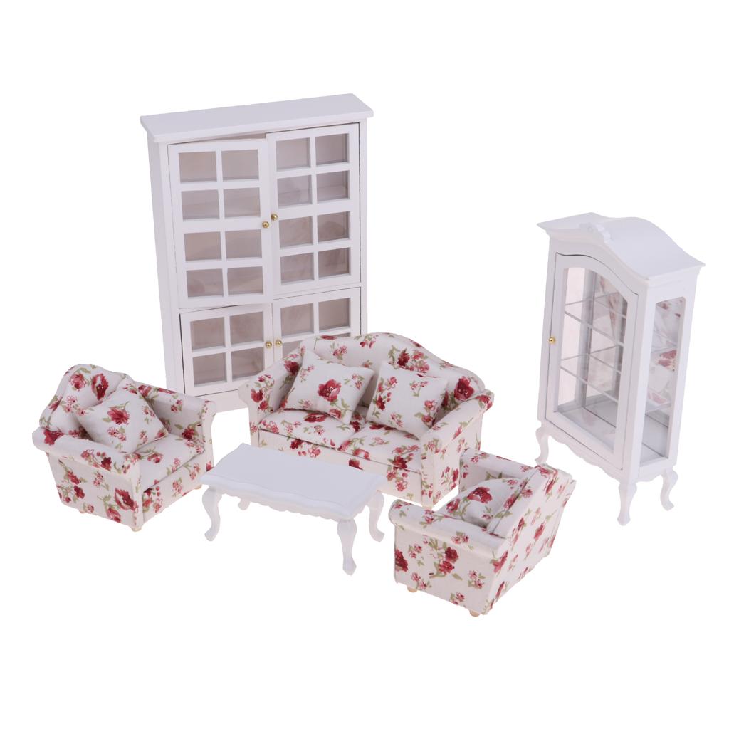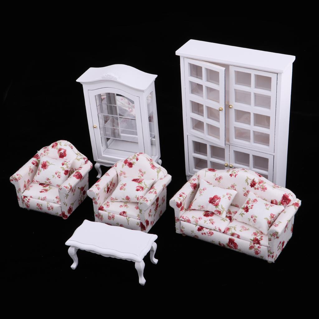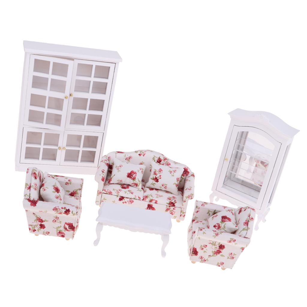 1 Set Dollhouse Furniture(Sofa, End Table and Cabinet)