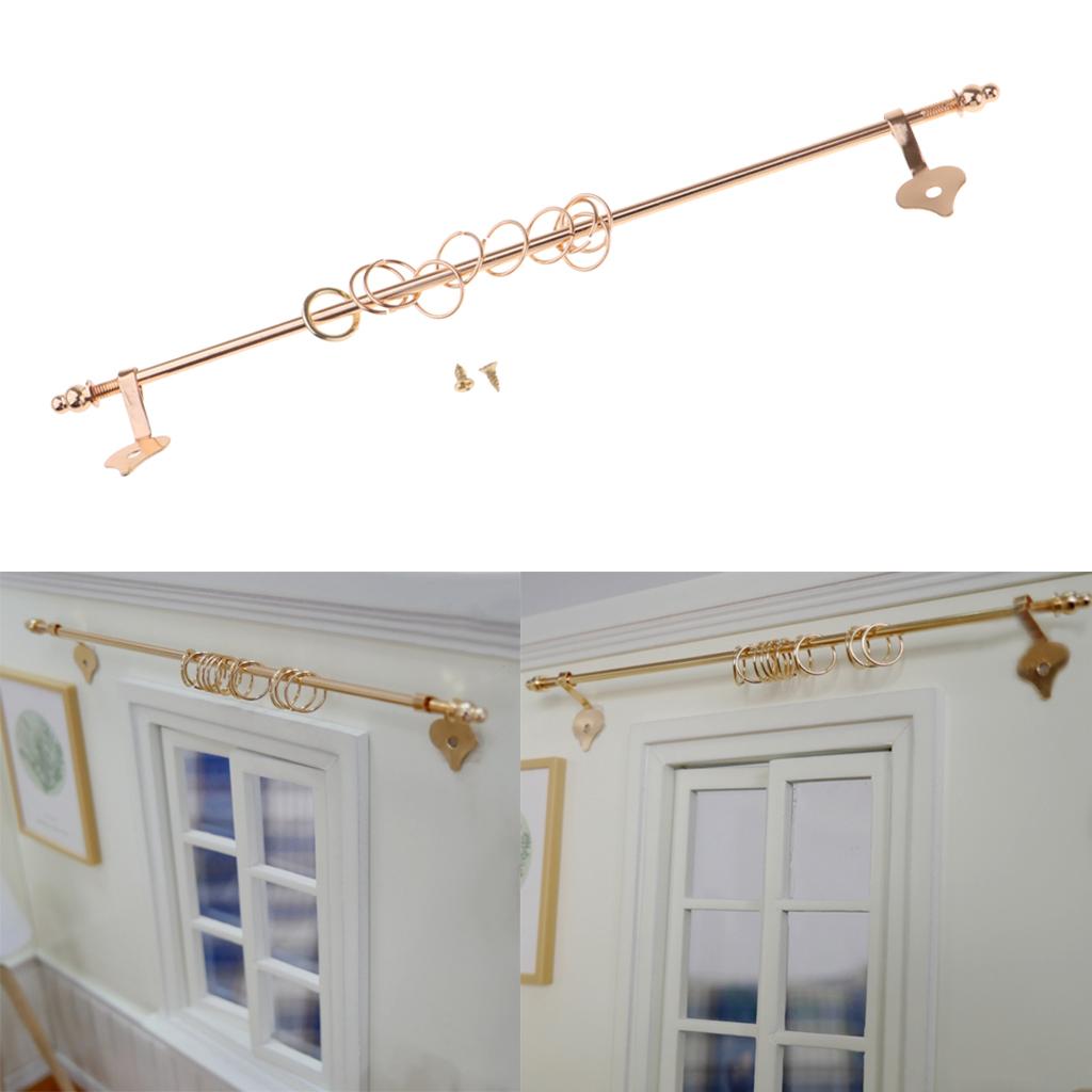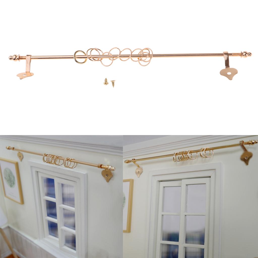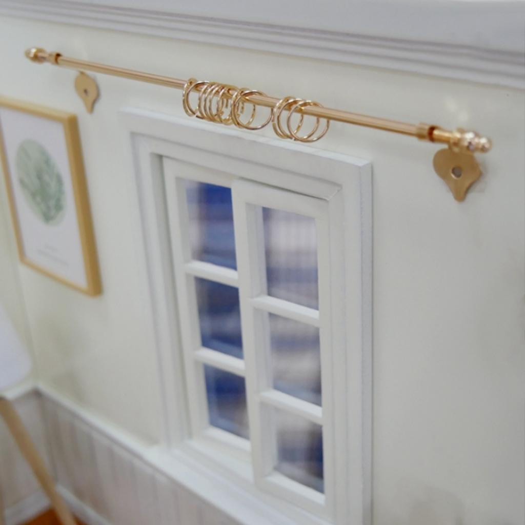1:12 Dollhouse DIY Miniature Curtain Rod Mini Golden Dollhouse Furniture Accessories.