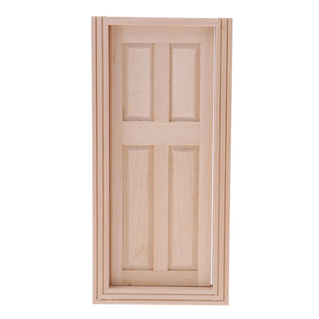 1/12 Scale Miniature Wooden 4-Pane Single Door Unpainted Furniture for Dolls House DIY Accessories