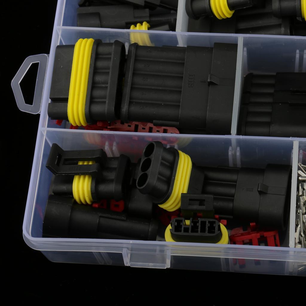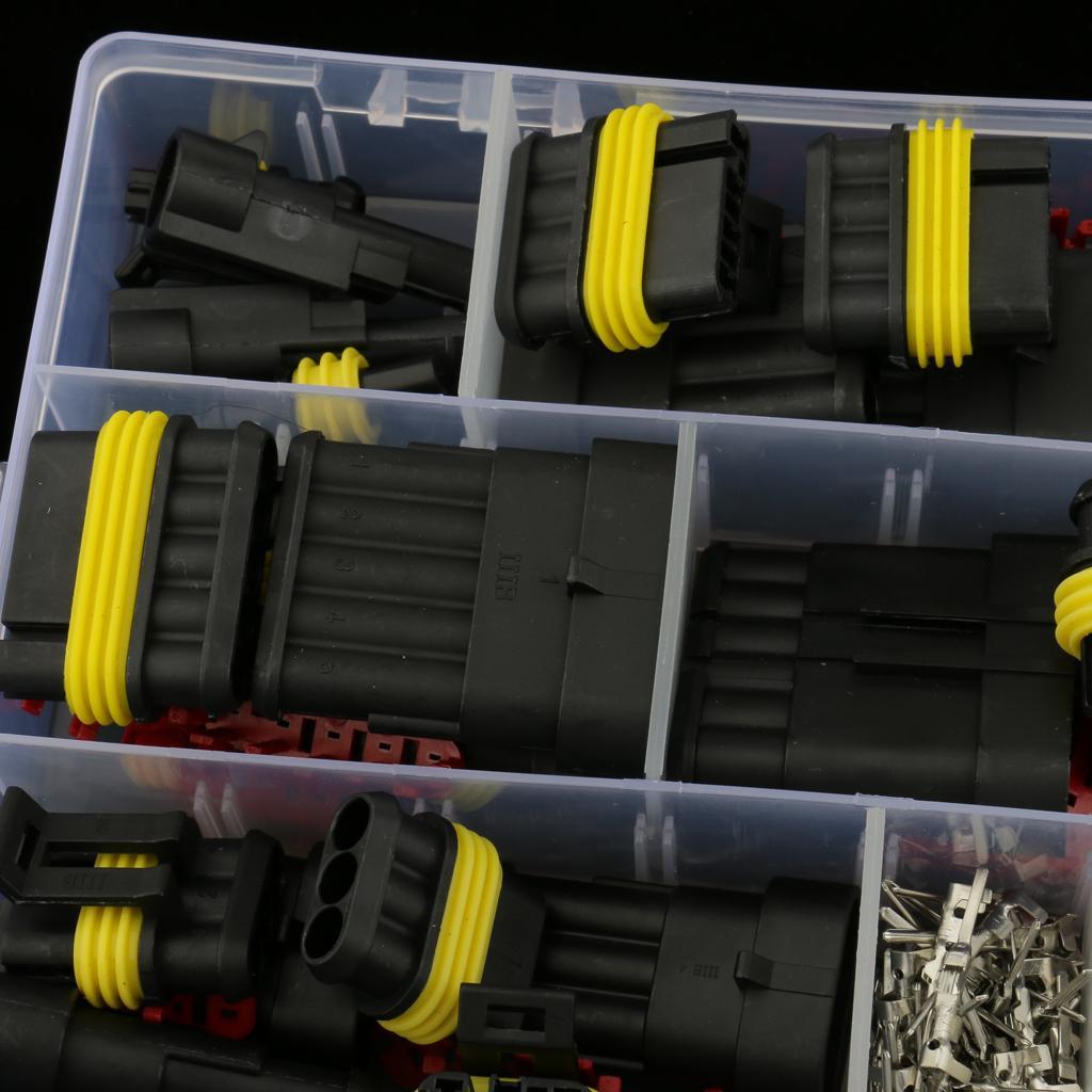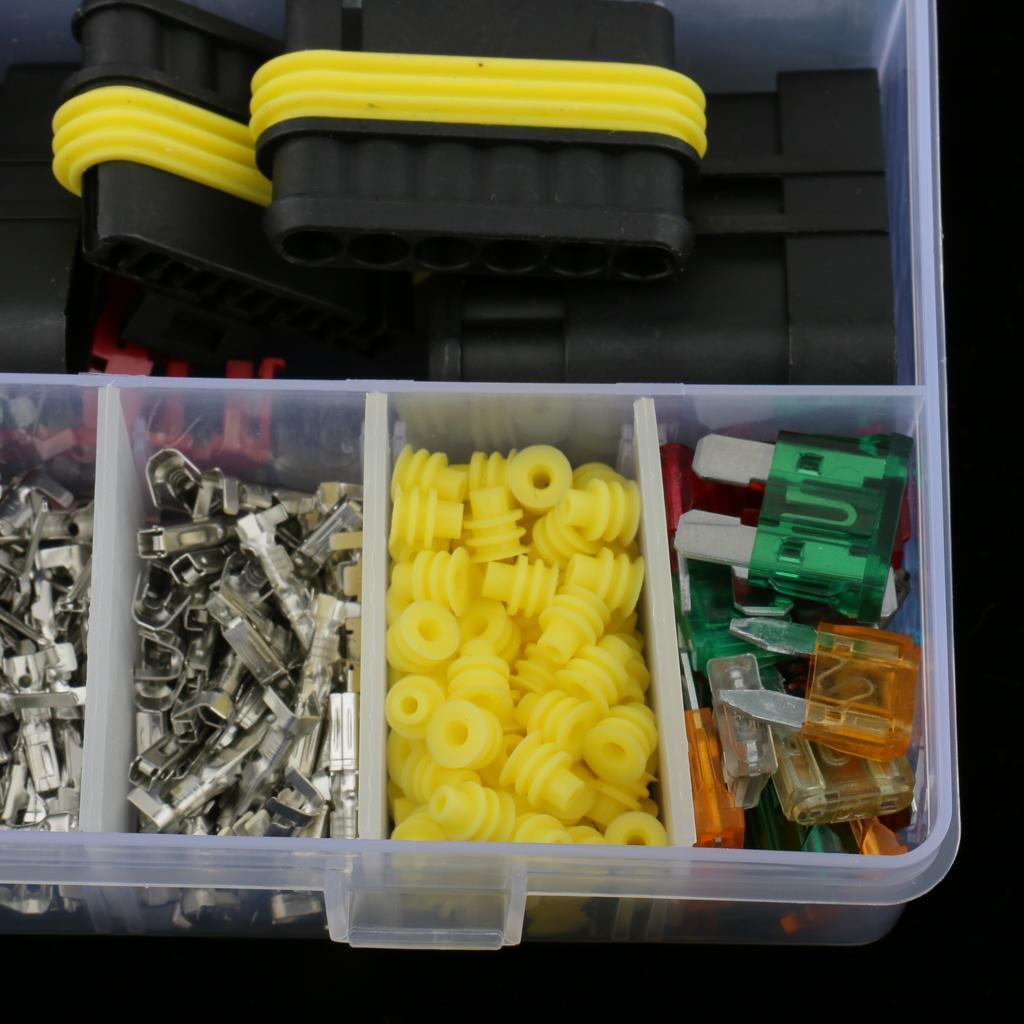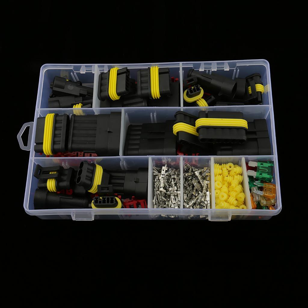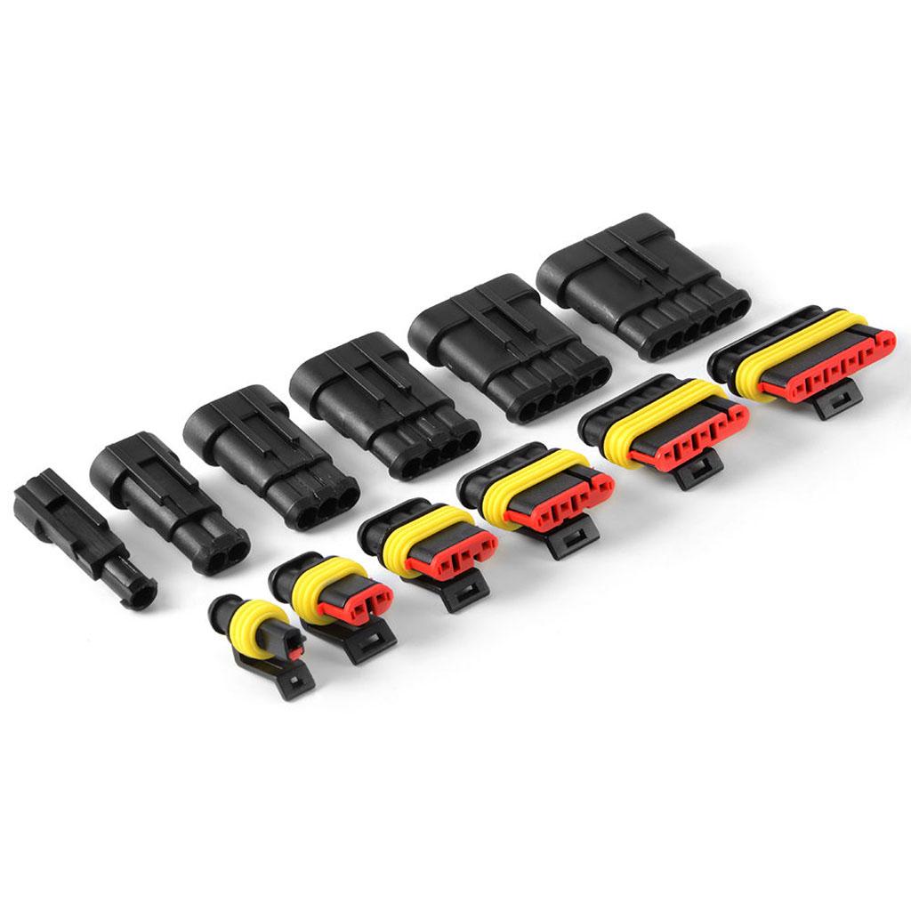 1-Pin, 2-Pin, 3-Pin, 4-Pin, 5-Pin and 6-Pin Supersealed Waterproof Electrical Wire Connector Sets with Standard and Mini Blade Fuses.