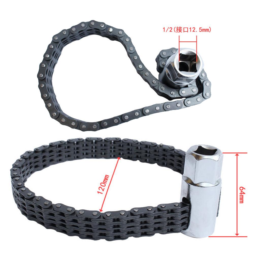Simple to use, simply slip the chain around the filter to be removed, and turn the hexagonal bar anticlockwise to grip and unscrew the filter.