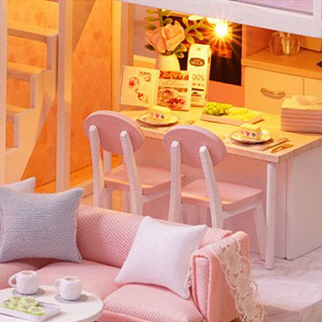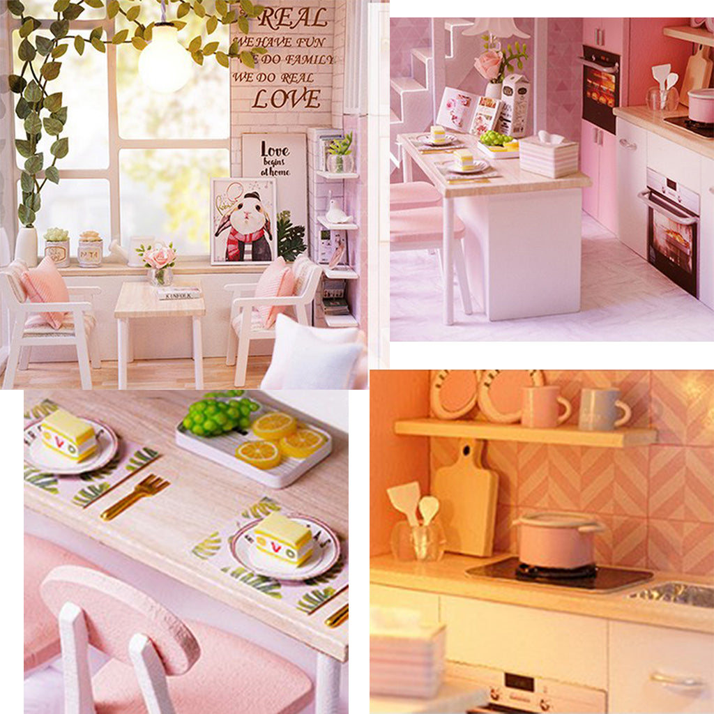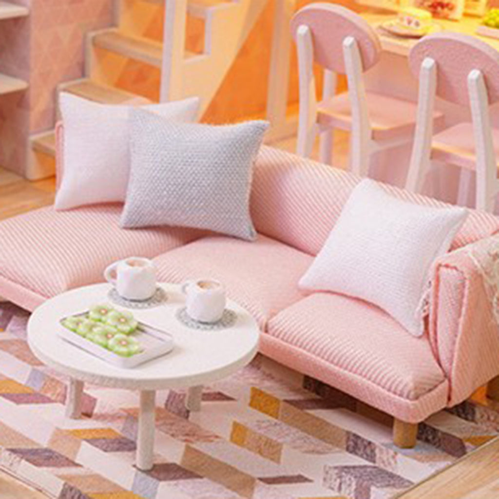 The model with furniture, LED lights and various daily supplies, dust-proof cover, without batteries and glue, very lifelike, very