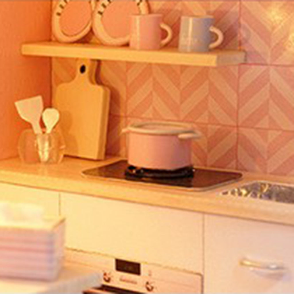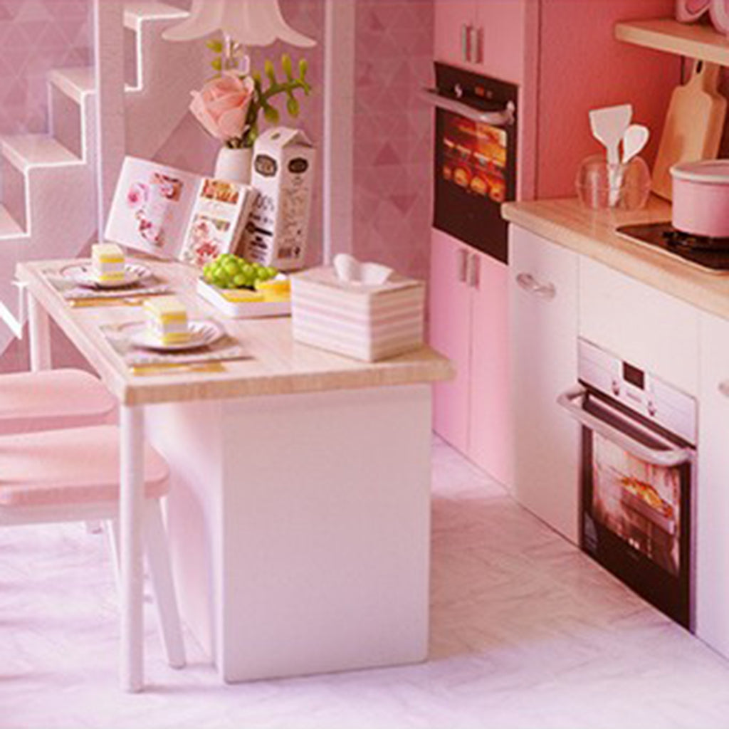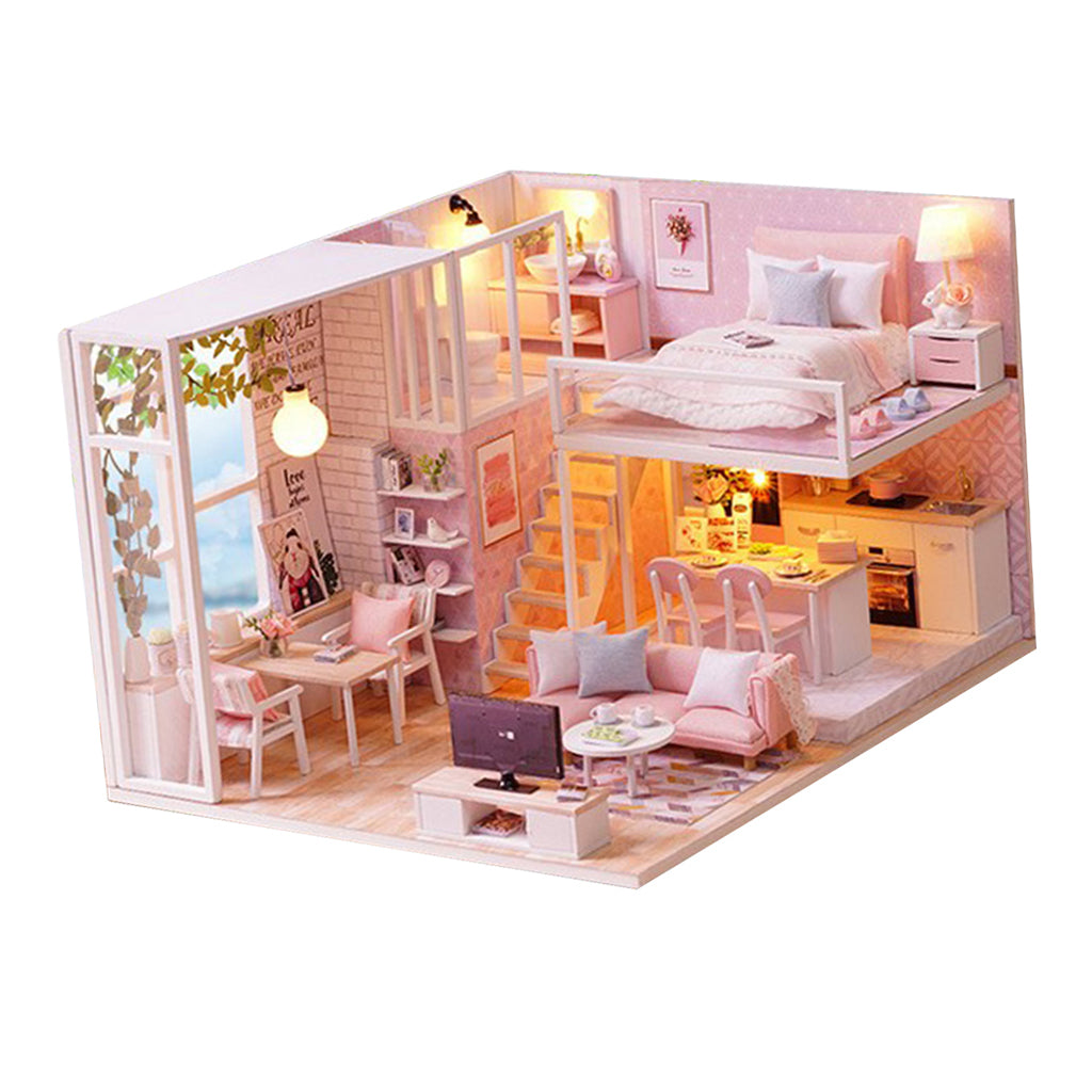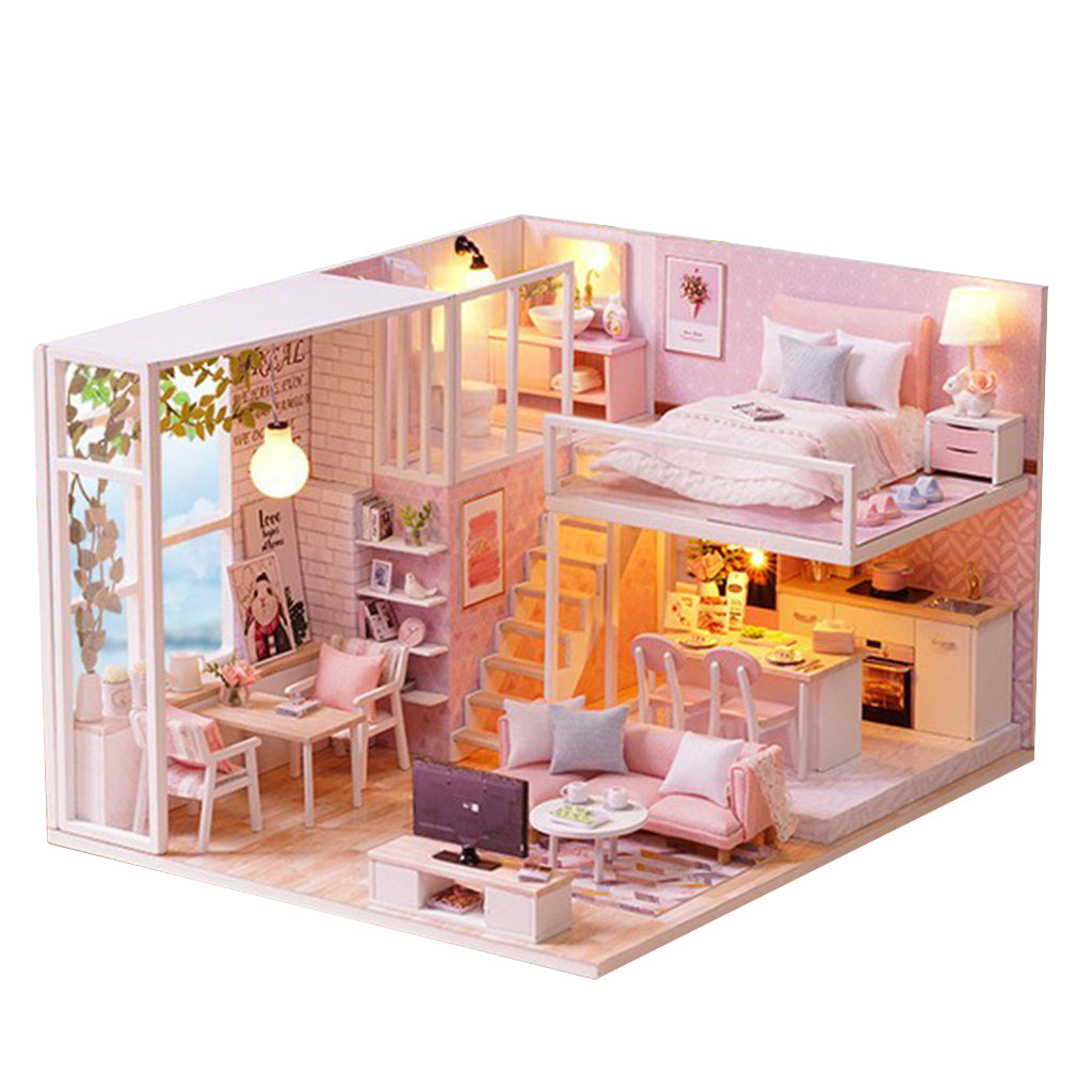 The model with furniture, LED lights and various daily supplies, dust-proof cover, without batteries and glue, very lifelike, very