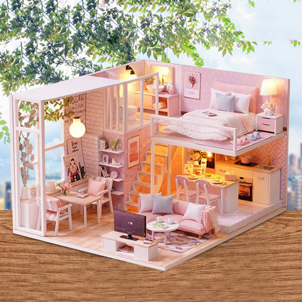 1/24 Dollhouse kit DIY miniature wooden handmade house furnished with