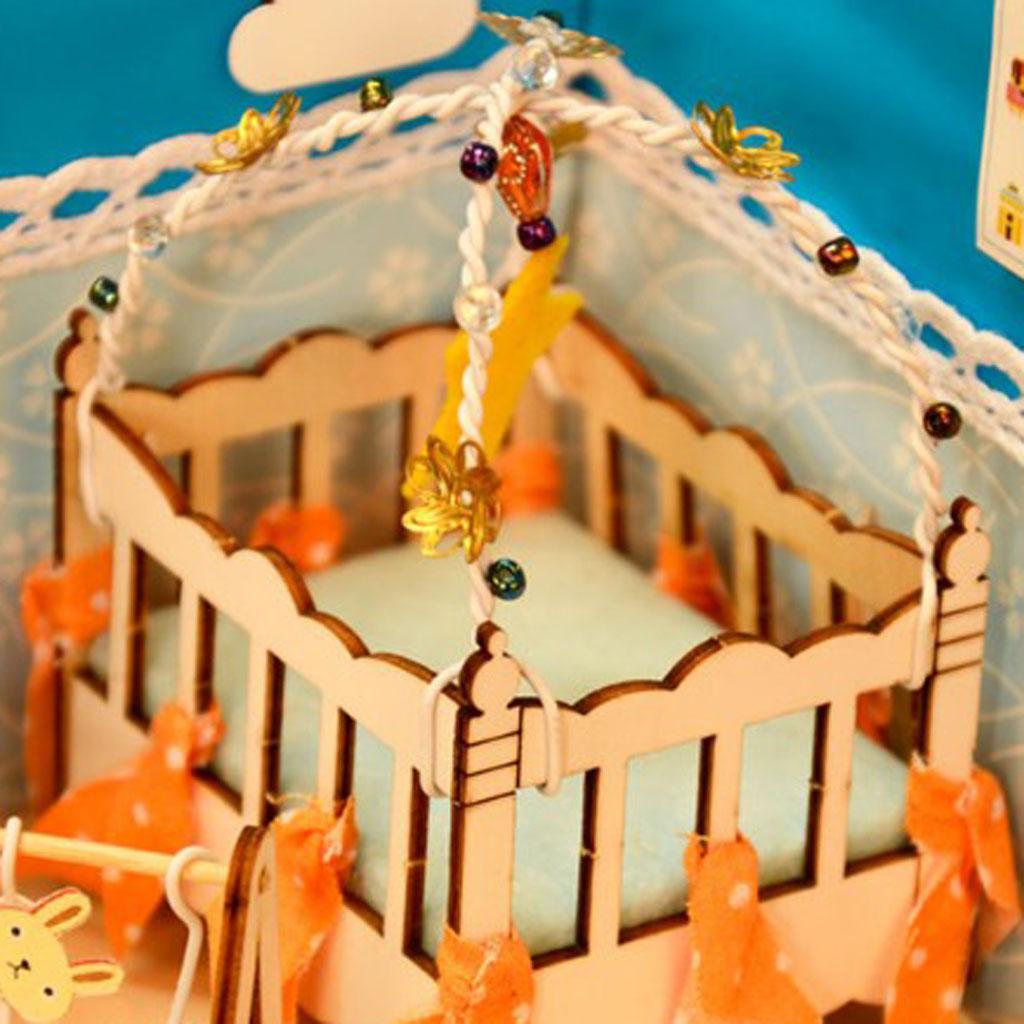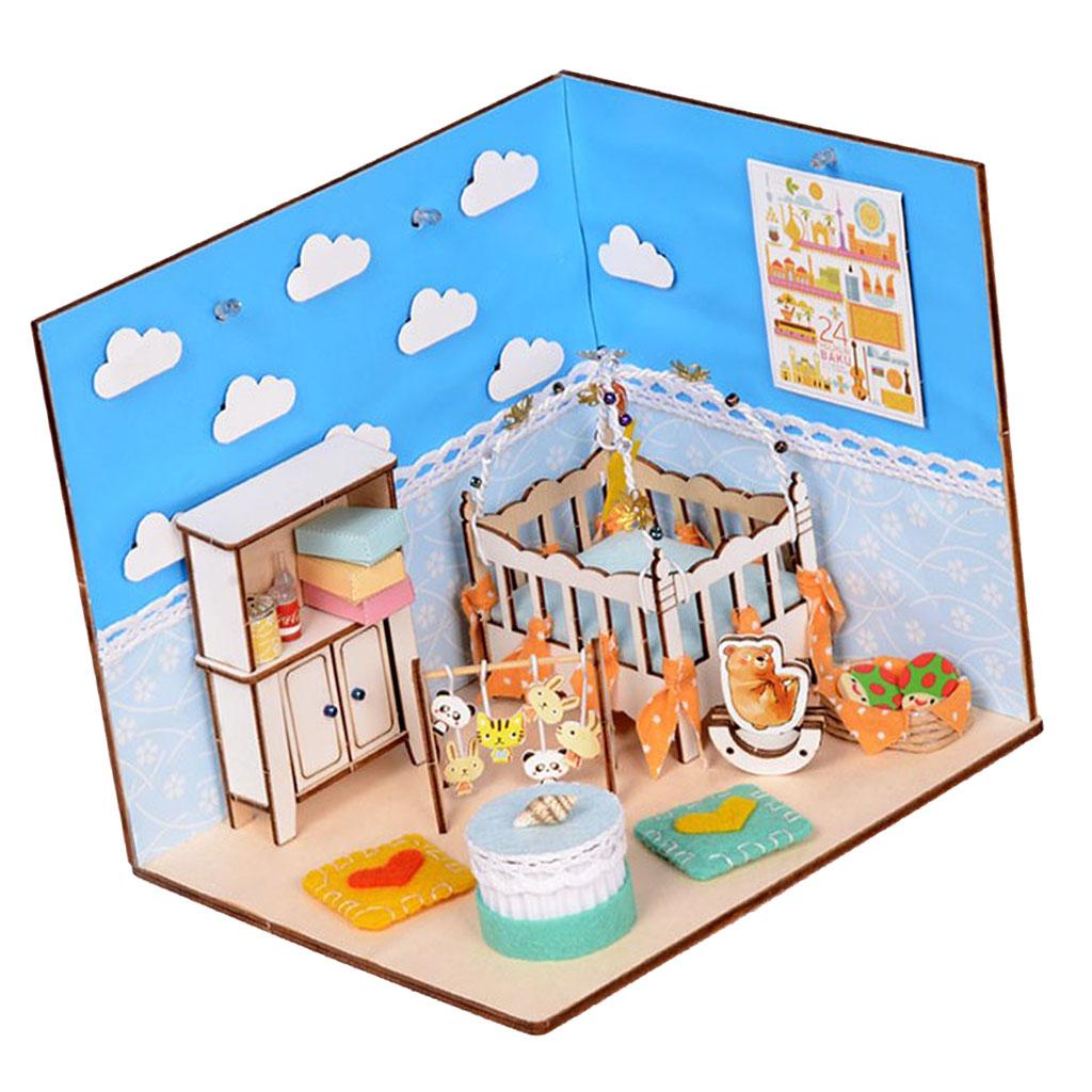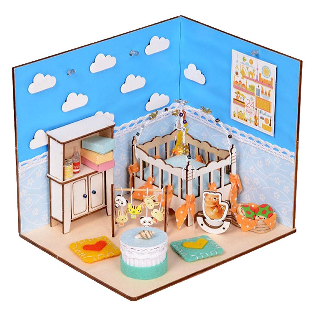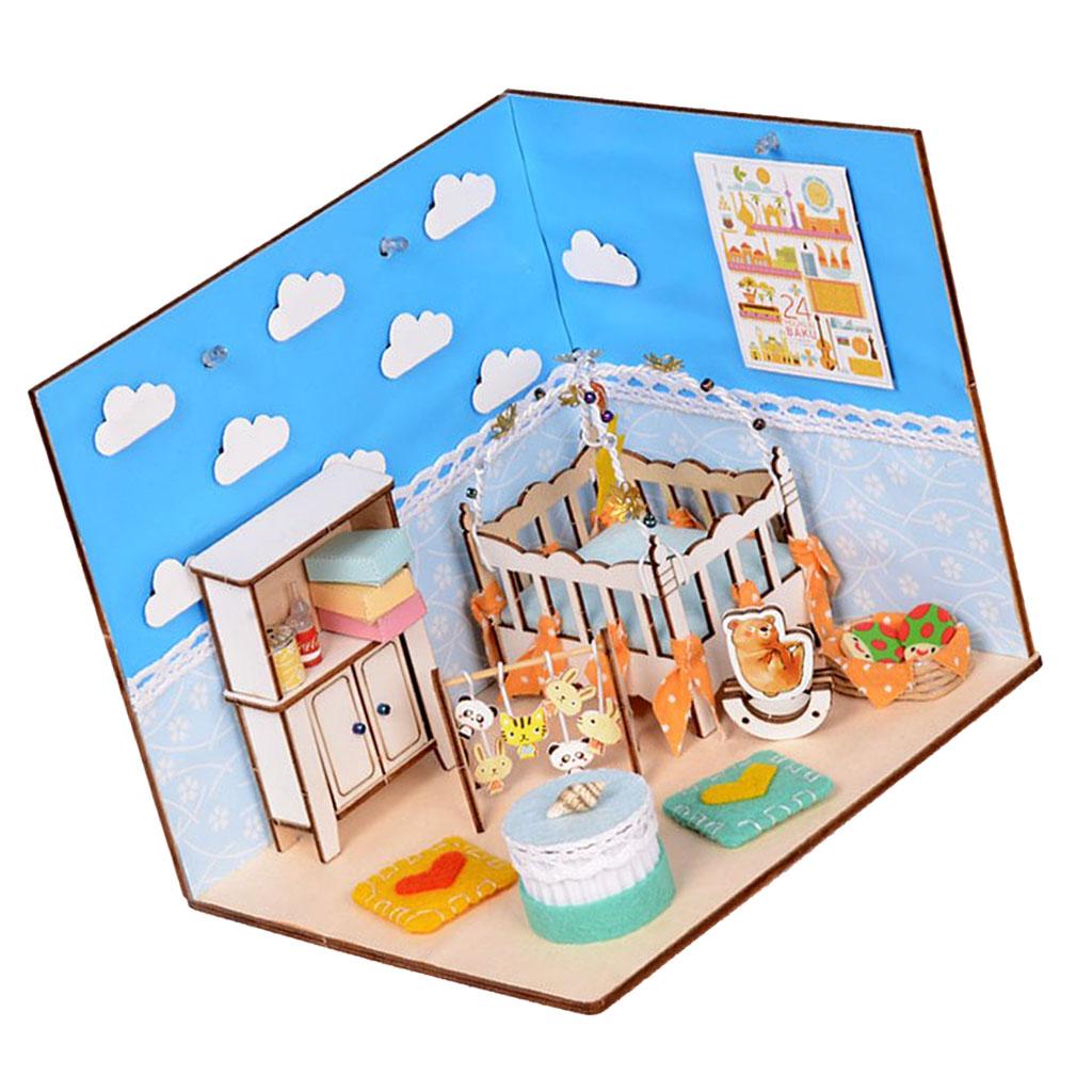 1/24 Scale Wooden Dollhouse Miniature Kits With Furniture & LED Light - Baby Bedroom Nursery Room Model