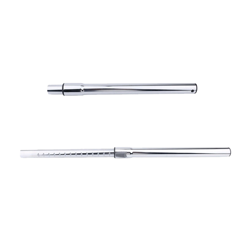 Universal stainless steel vacuum extension wand, durable and rust resistant.