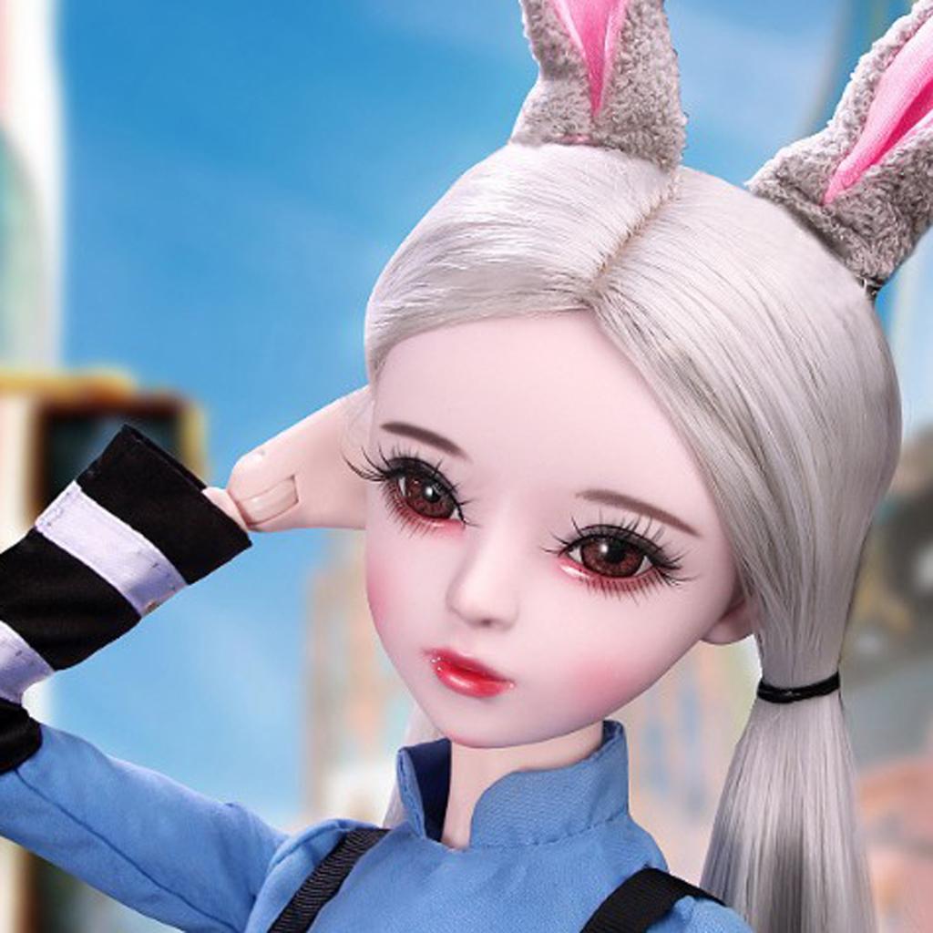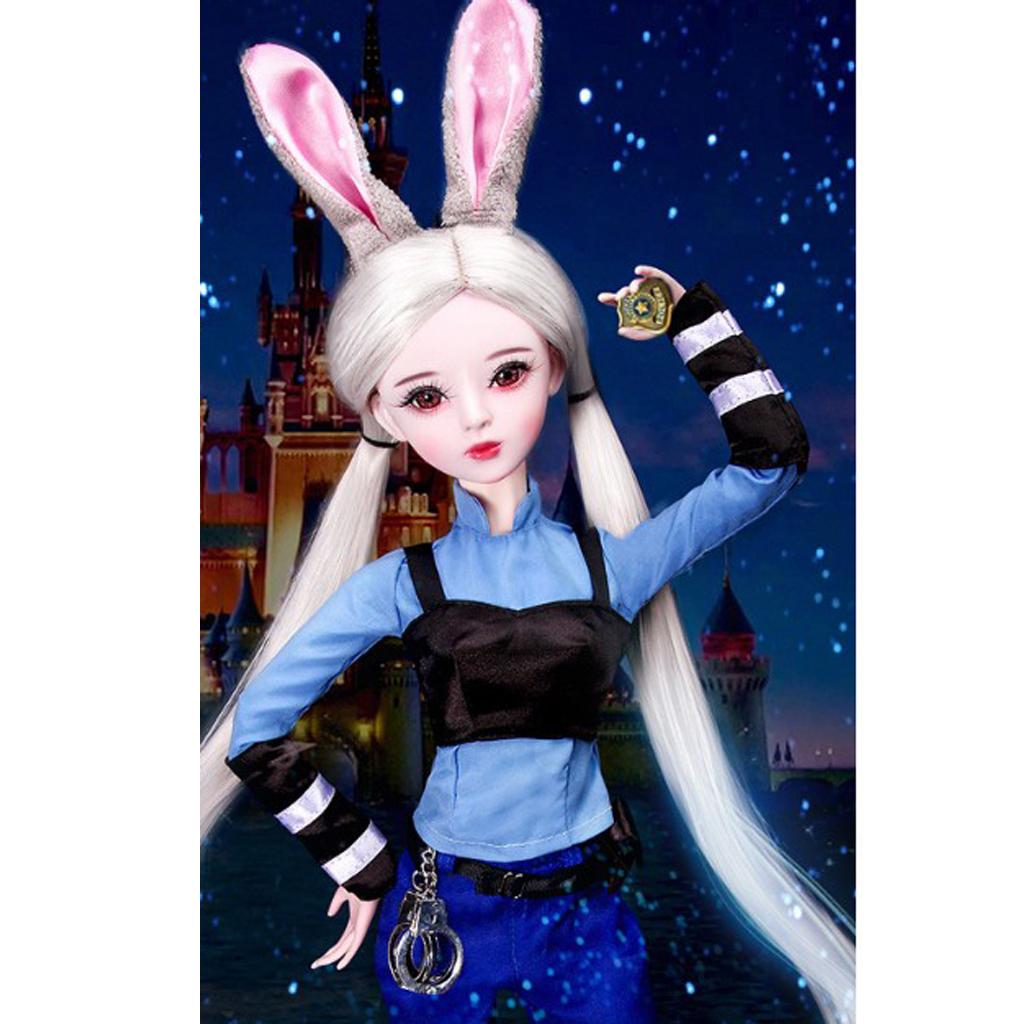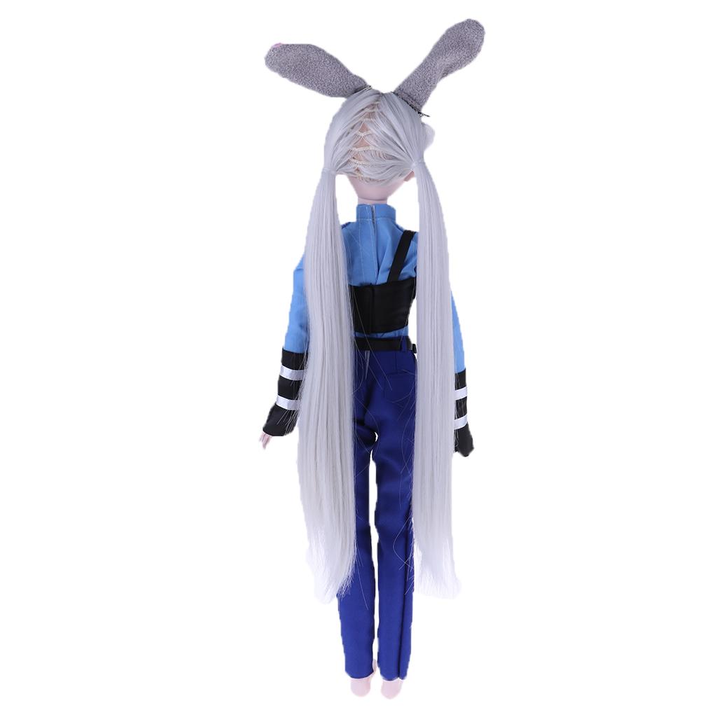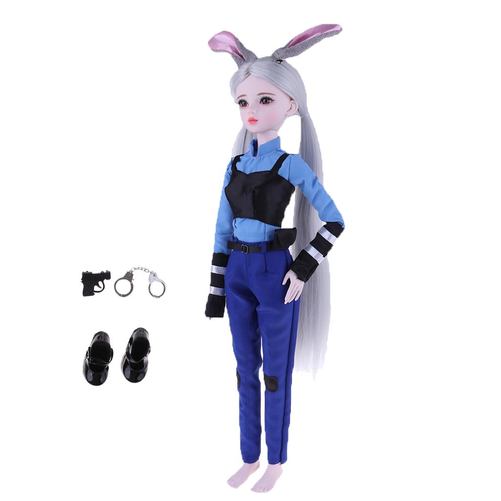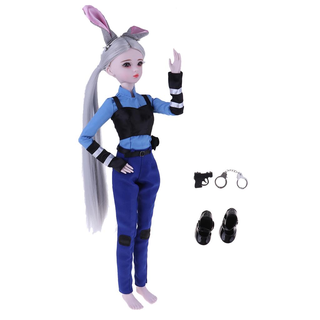 Fashion jointed career girl dolls wearing rabbit policewoman uniform set(can take off), with gray straight hair, makeup face and accessories