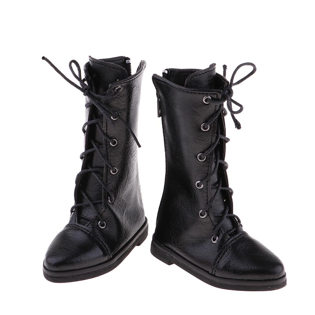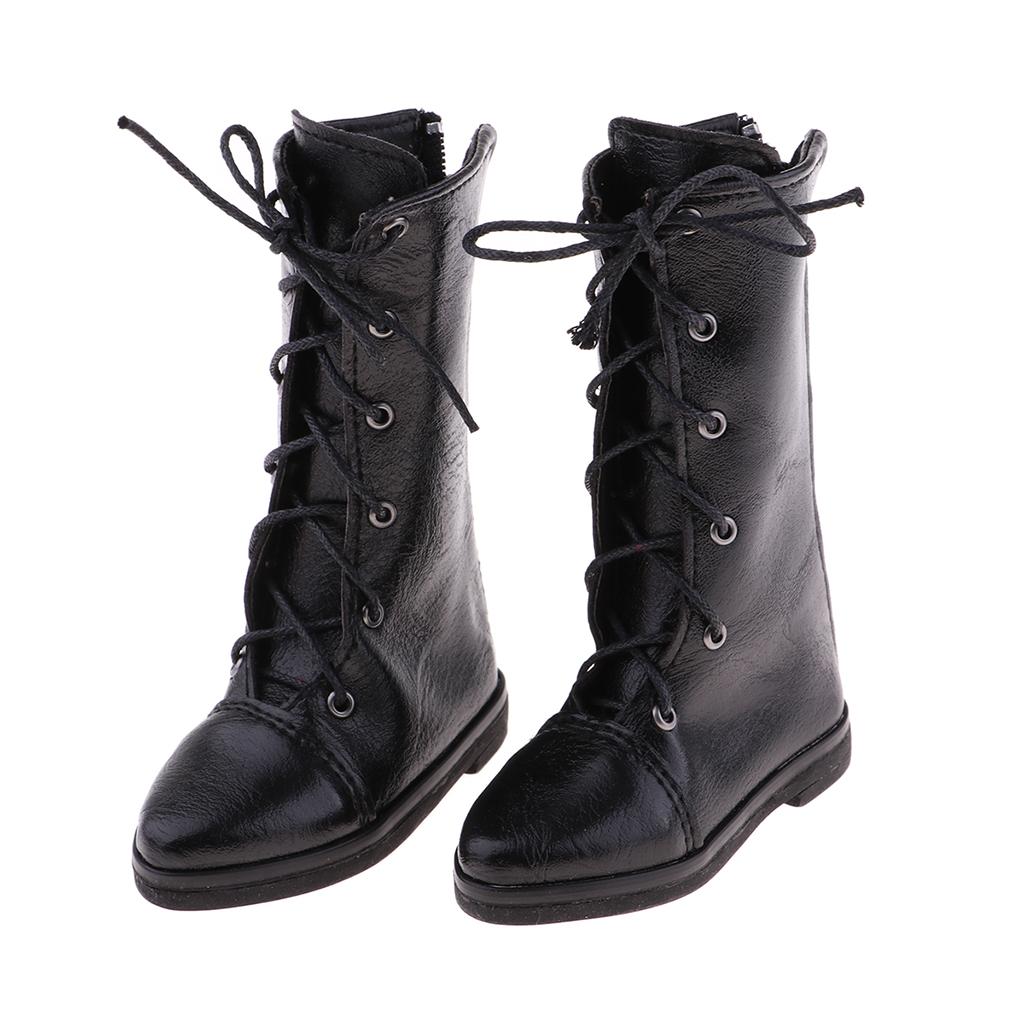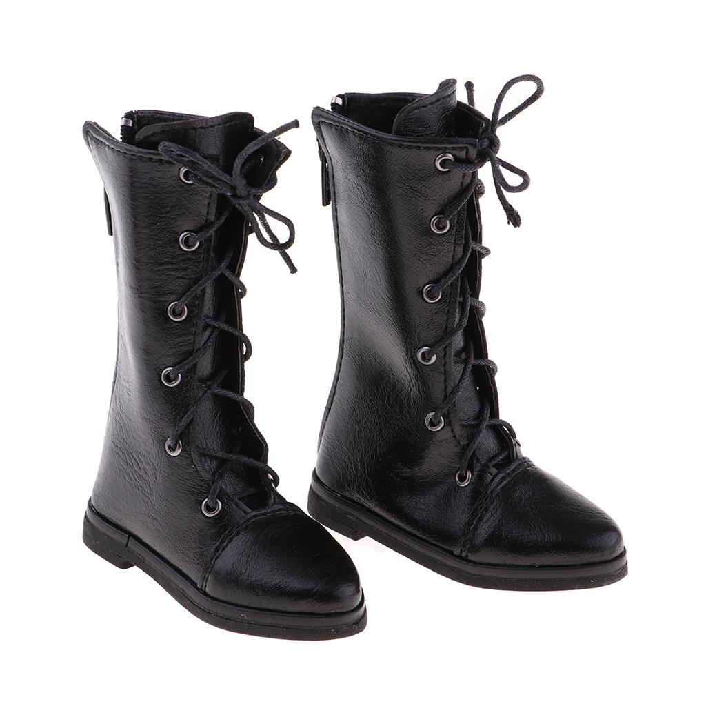 1/3 BJD Doll Black PU Leather Boots Lace Up Shoes for Dollfie DOD AS Clothes Accessories