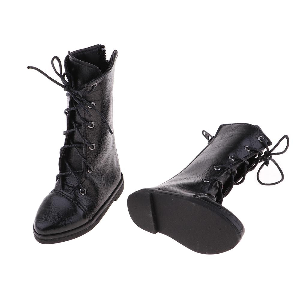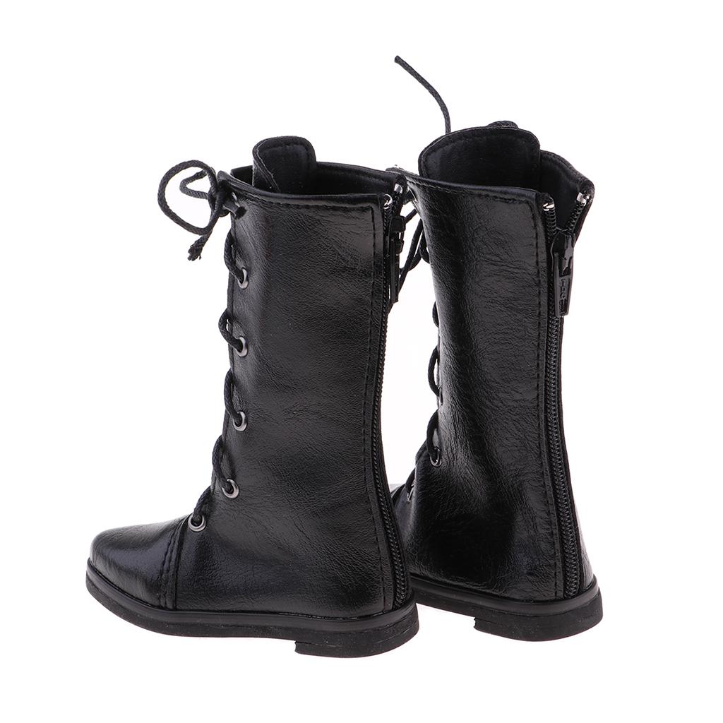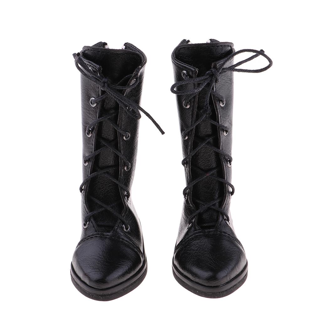 1/3 BJD Doll Black PU Leather Boots Lace Up Shoes for Dollfie DOD AS Clothes Accessories