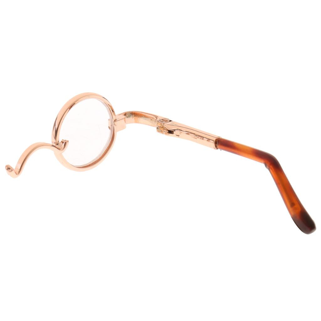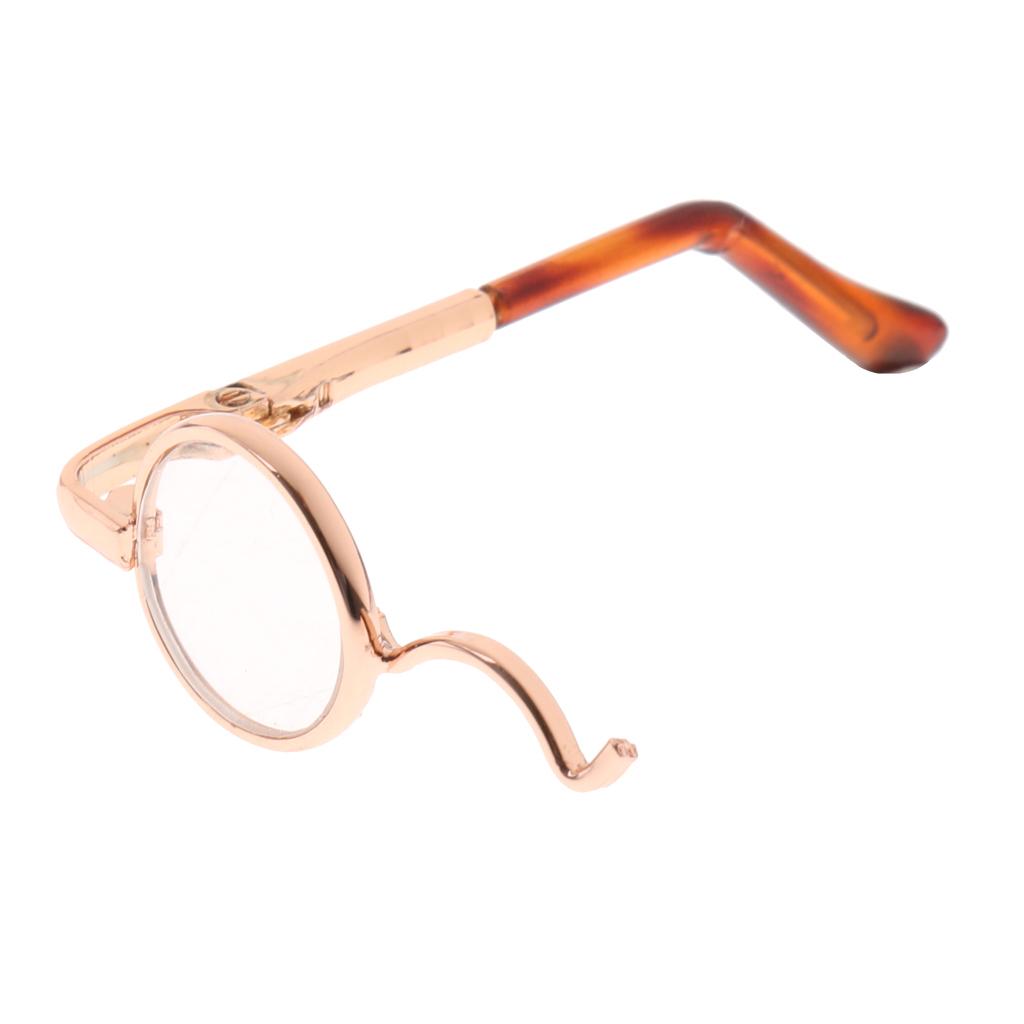 Pair of round frame eye glasses - clear glasses lens gold frame - for dolls dress up accessories