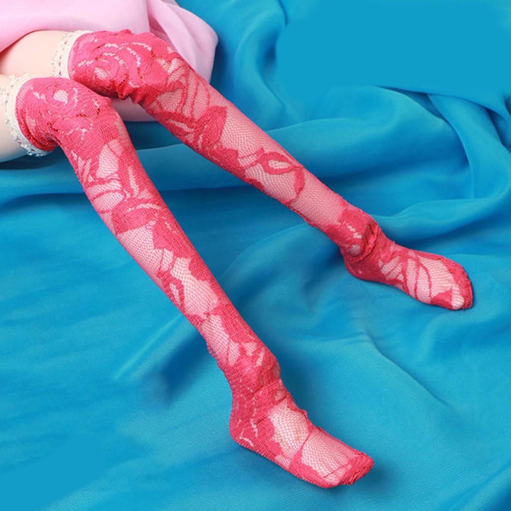 1/3 BJD Dolls Lace Stockings Long Socks for SD MSD Dolls Accessory Rose Red