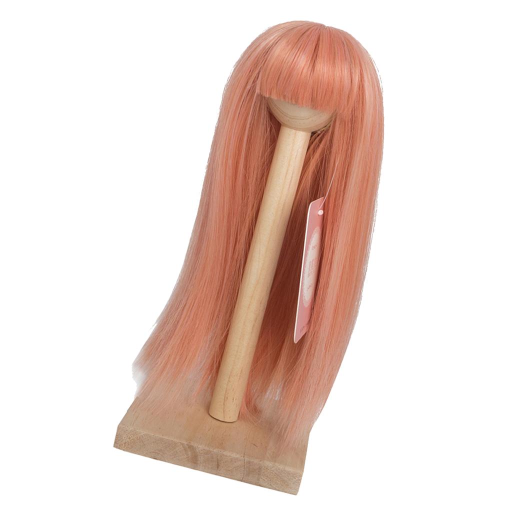 1/3 BJD Dolls Wig Curly Hair & Stand Hairpiece Display Supporter Peach Pink
