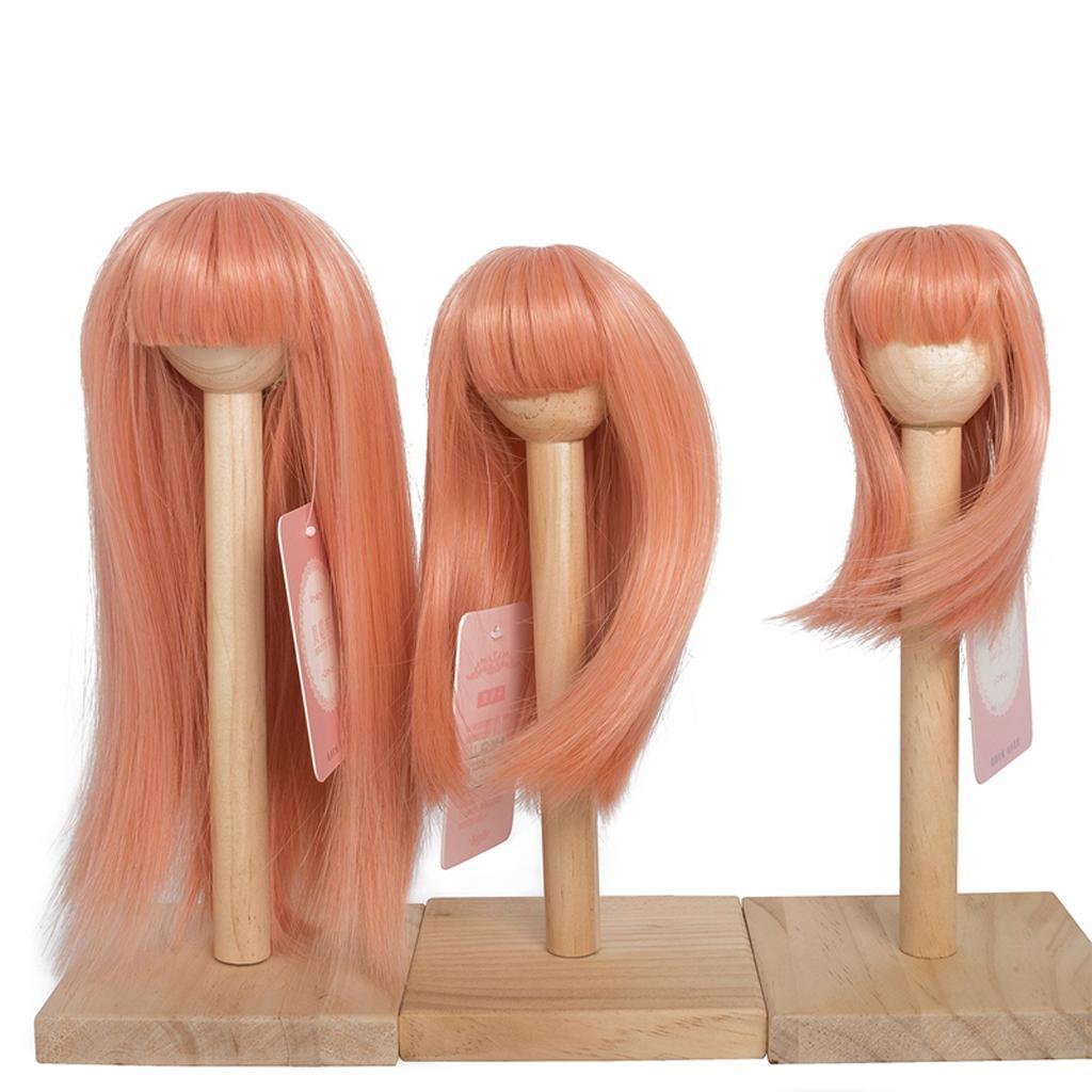 BJD doll wave wig DIY material & wooden stand hairpiece display supporter. You can dress up wigs hairs for your beloved doll according to the doll's head circumference to be your dream girls
