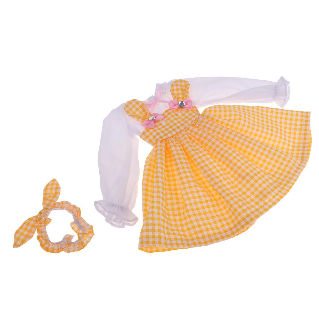 Fashion and lovely long sleeve rabbit plaid dress headband outfit for Ball Jointed Doll Dress Up.