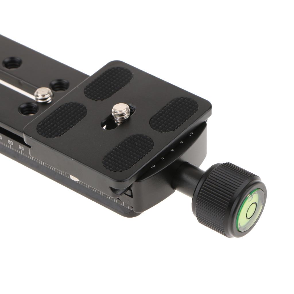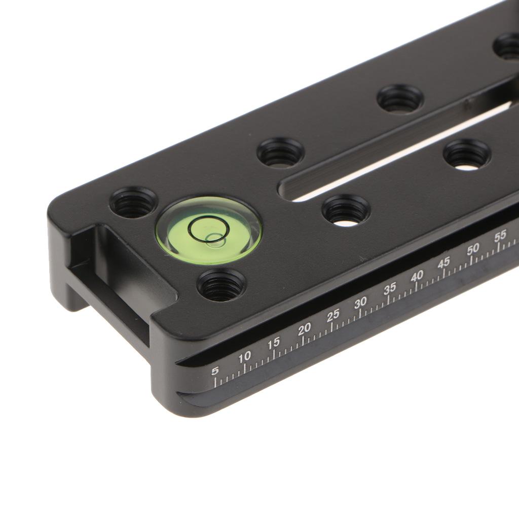 Includes 9 standard 1/4" screw holes for dslr camera camcorder. Double dovetail slot & precision scale.