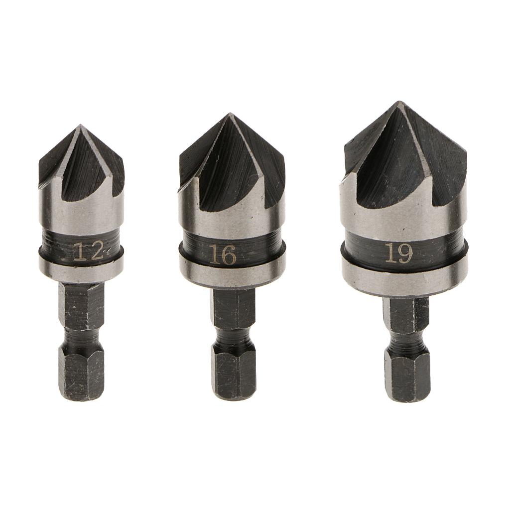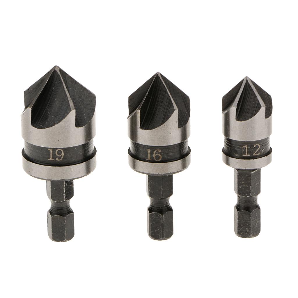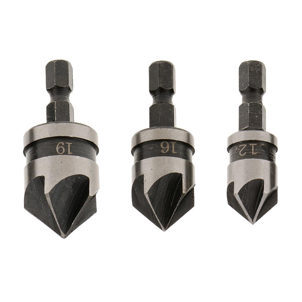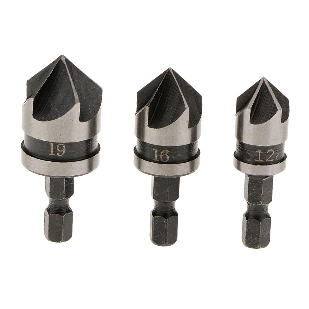 1/4 inch Hex 12, 16,19mm Countersink Power Drill Bit Bore Set for Wood Metal Set of 3