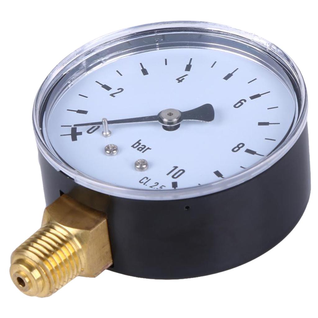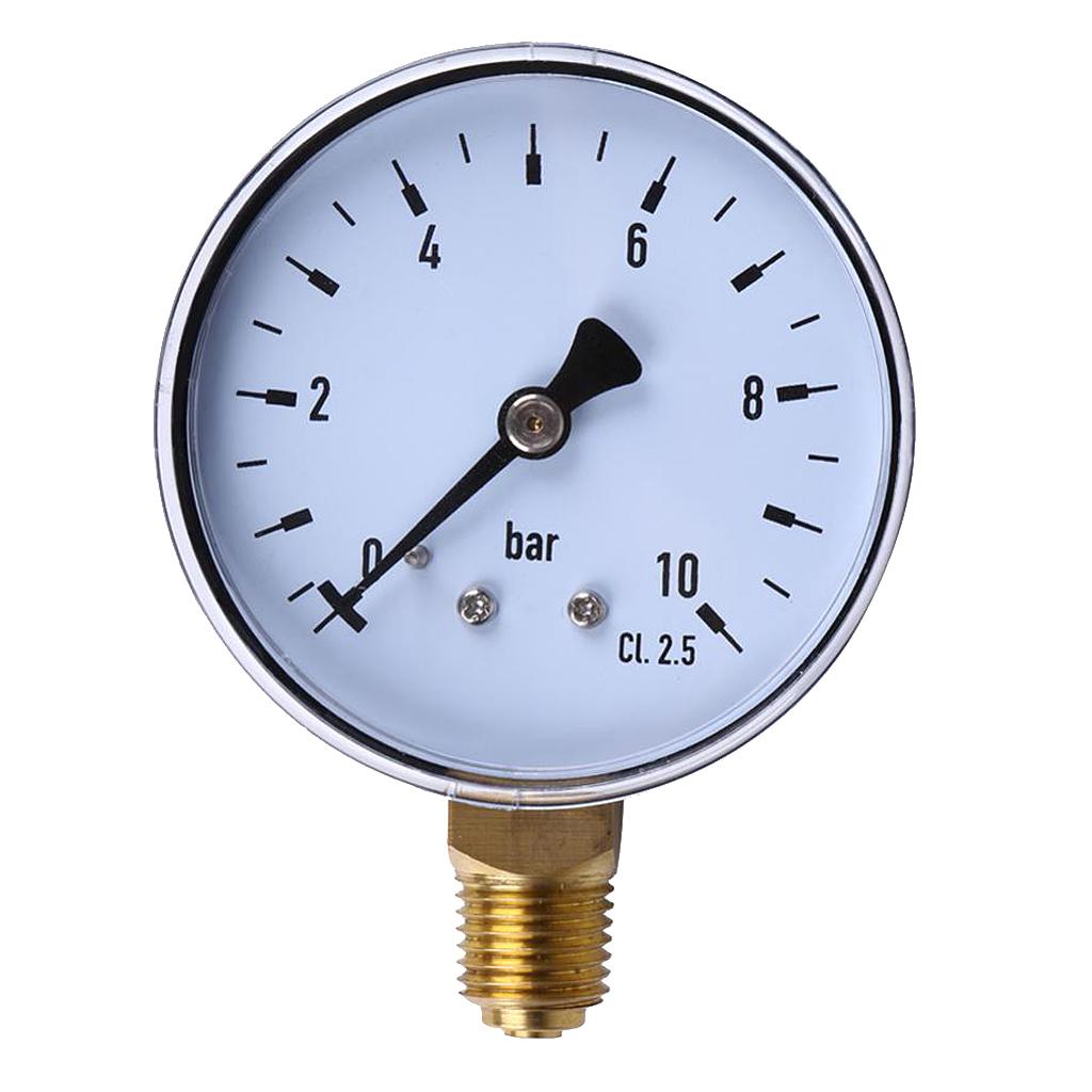 • 2.3" face with 1/4" NPT thread connection, side mounted, its measurement range is 0~10 bar