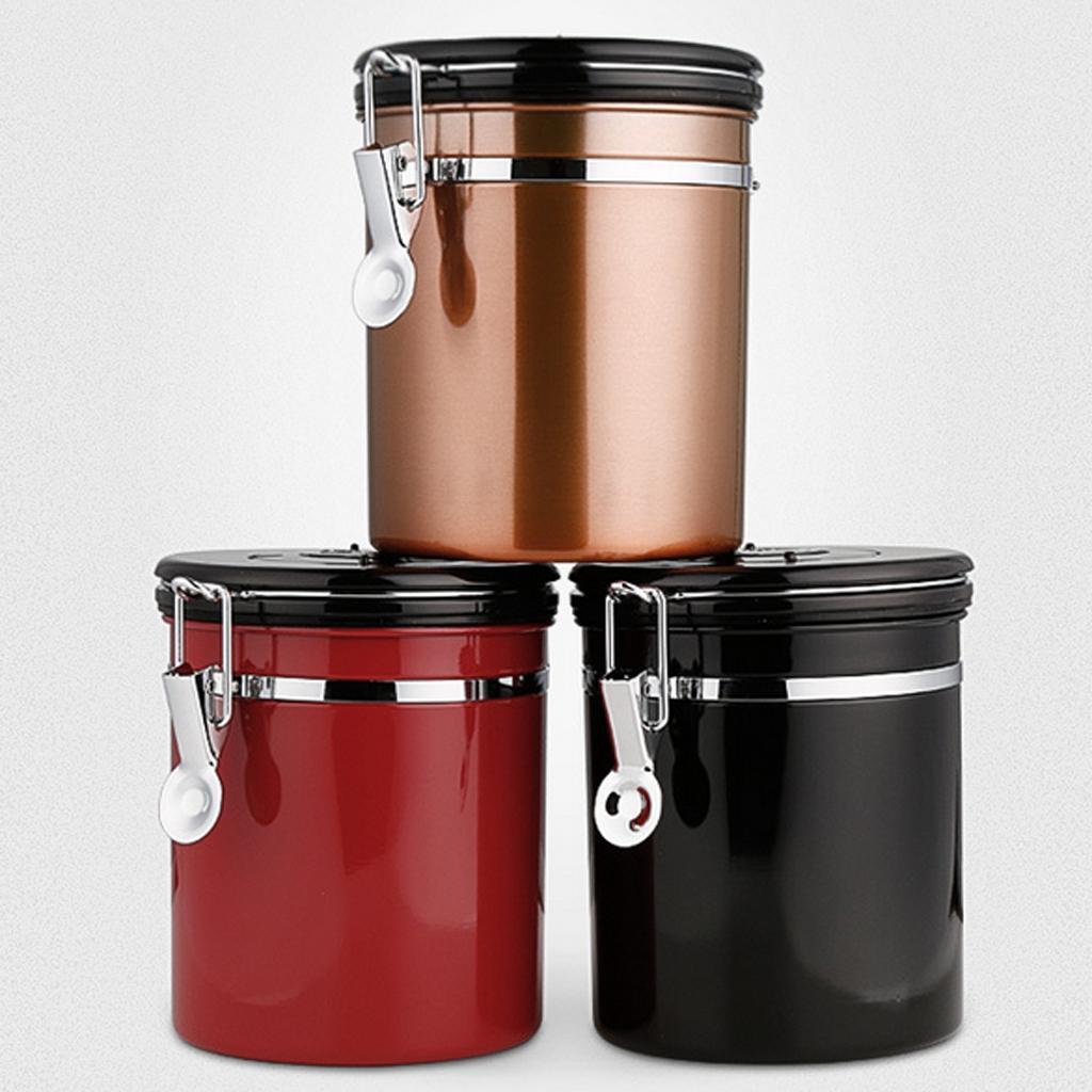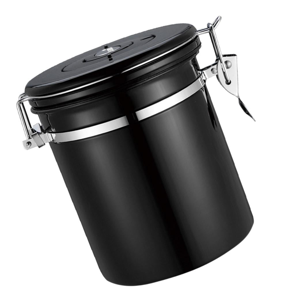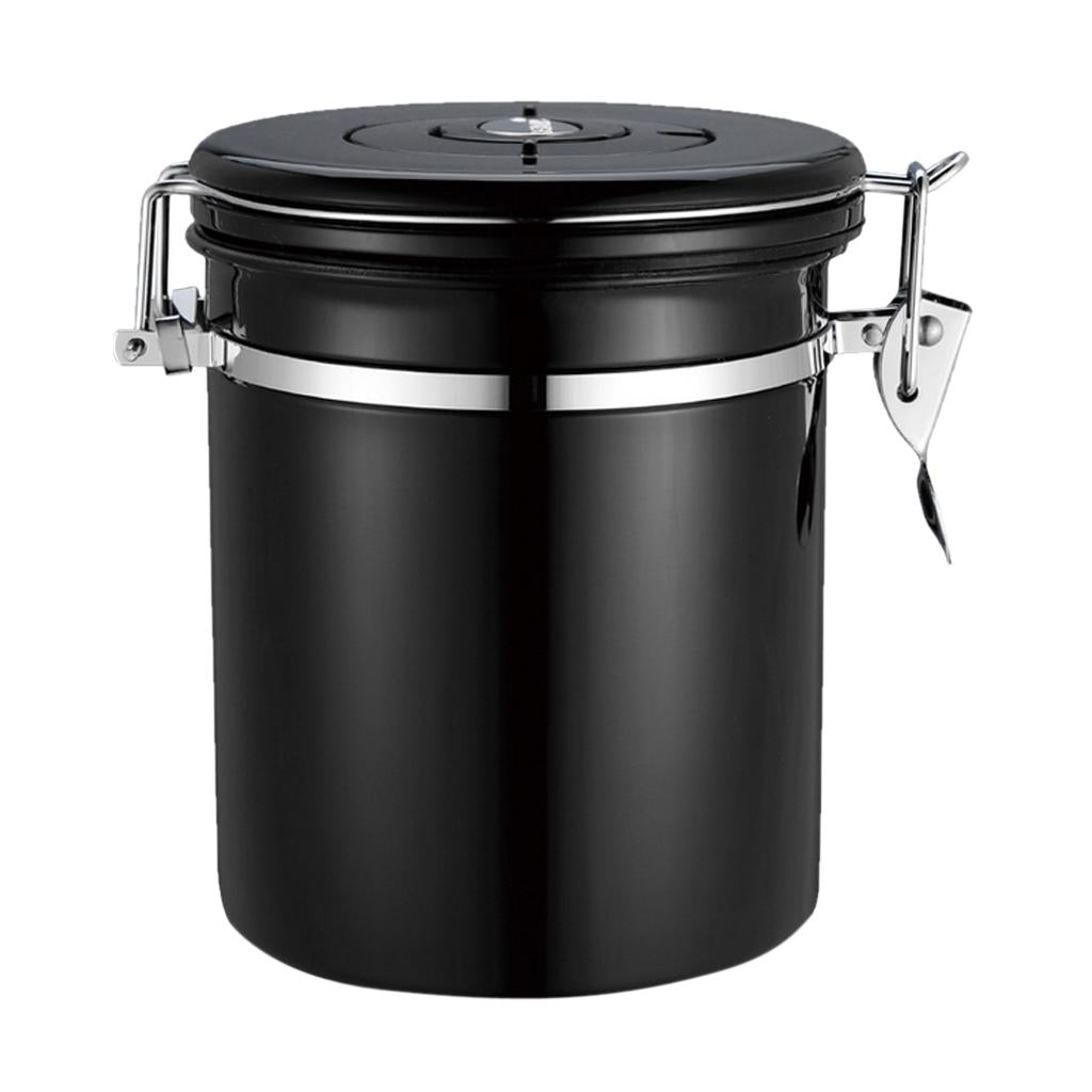 1.5L Capacity Stainless Steel Coffee Tea Canister Jar Box Sugar Storage Pot Seal Can for Home Hotel Office Use Black