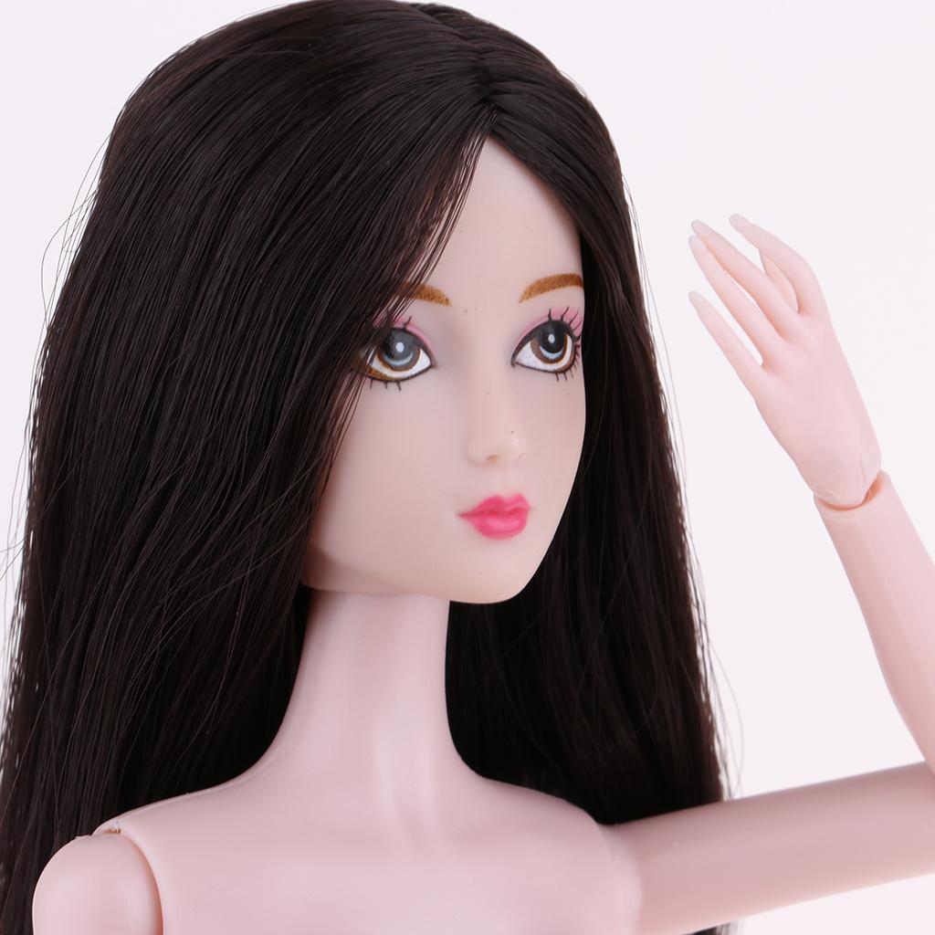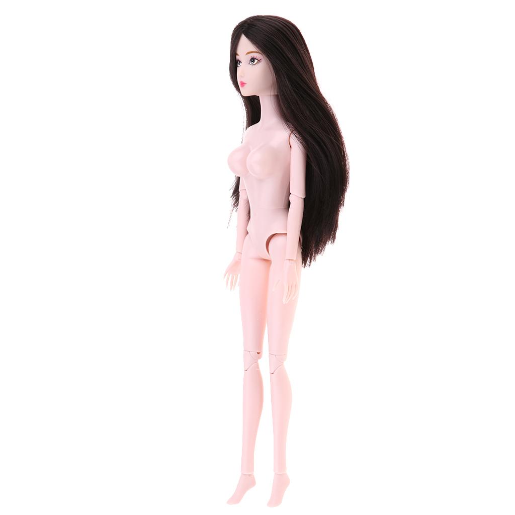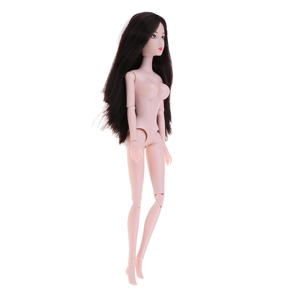 1/6 BJD Female Nude Body 14 Jointed Girl Doll with Head DIY Replacements Supplies (Black Hair)