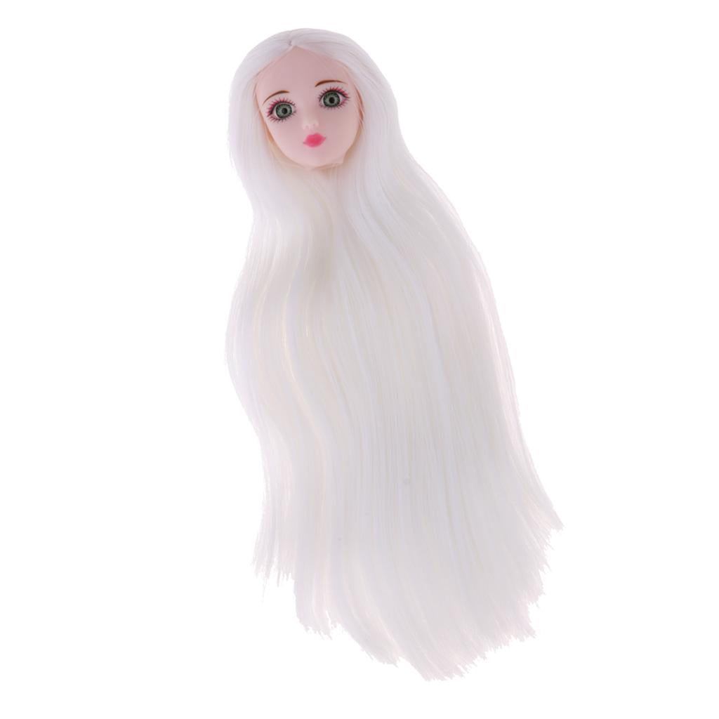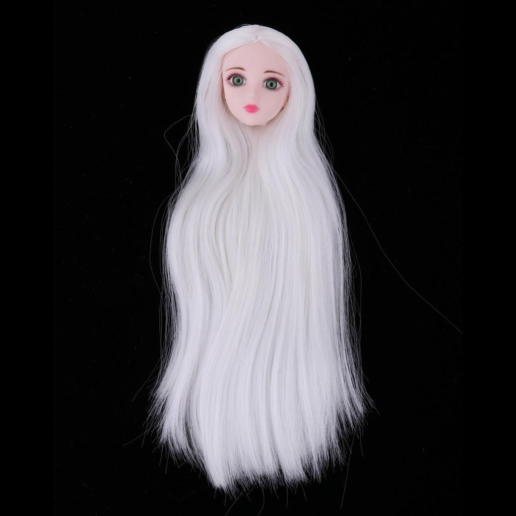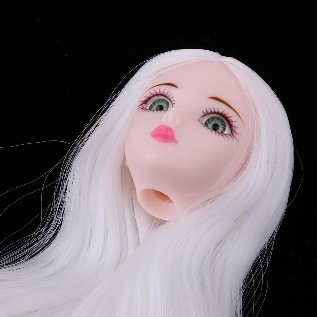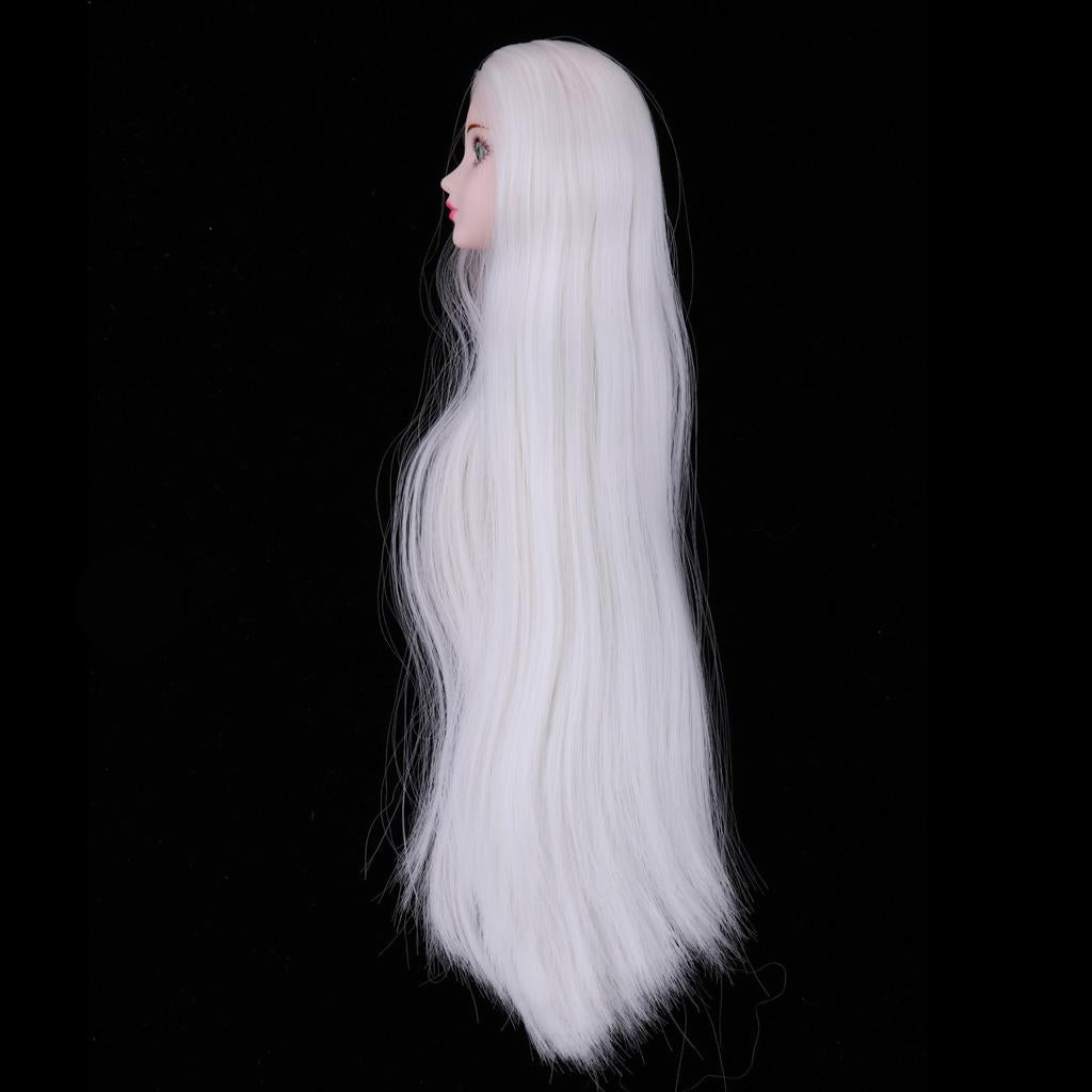 1/6 female Bjd doll head sculpt with white straight hair wig and 3D eyes- make up