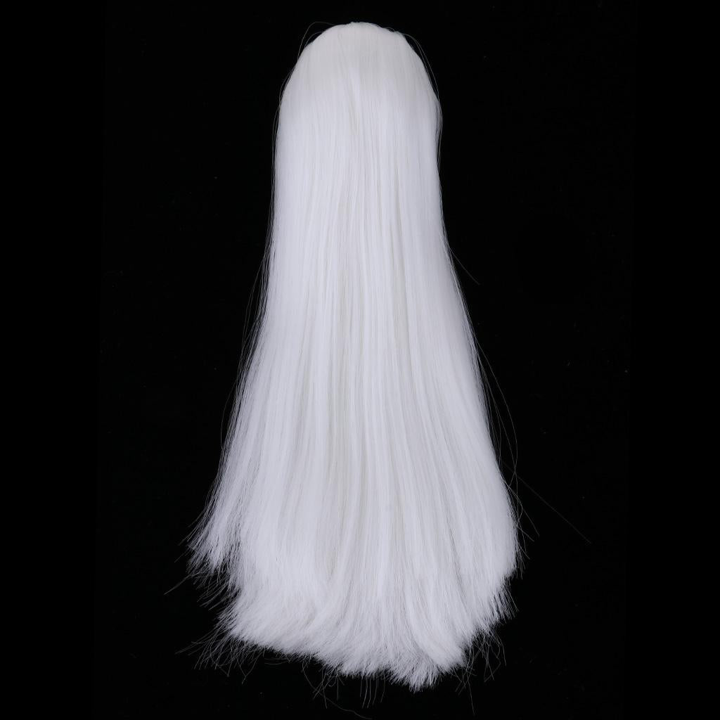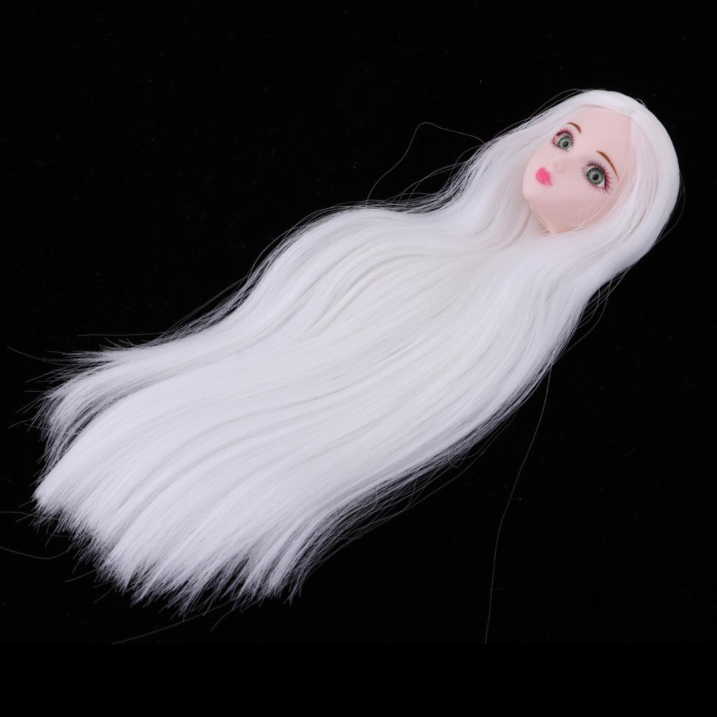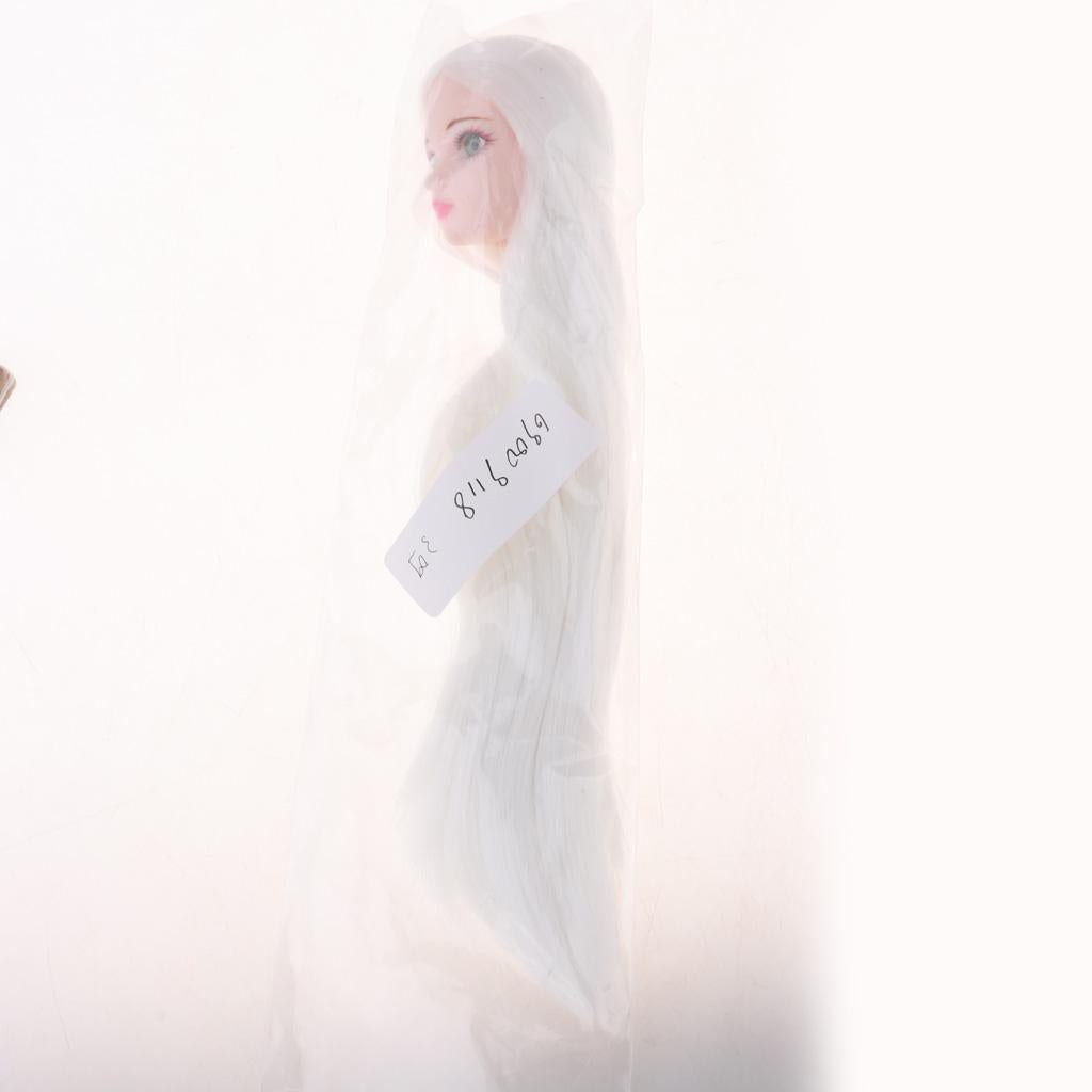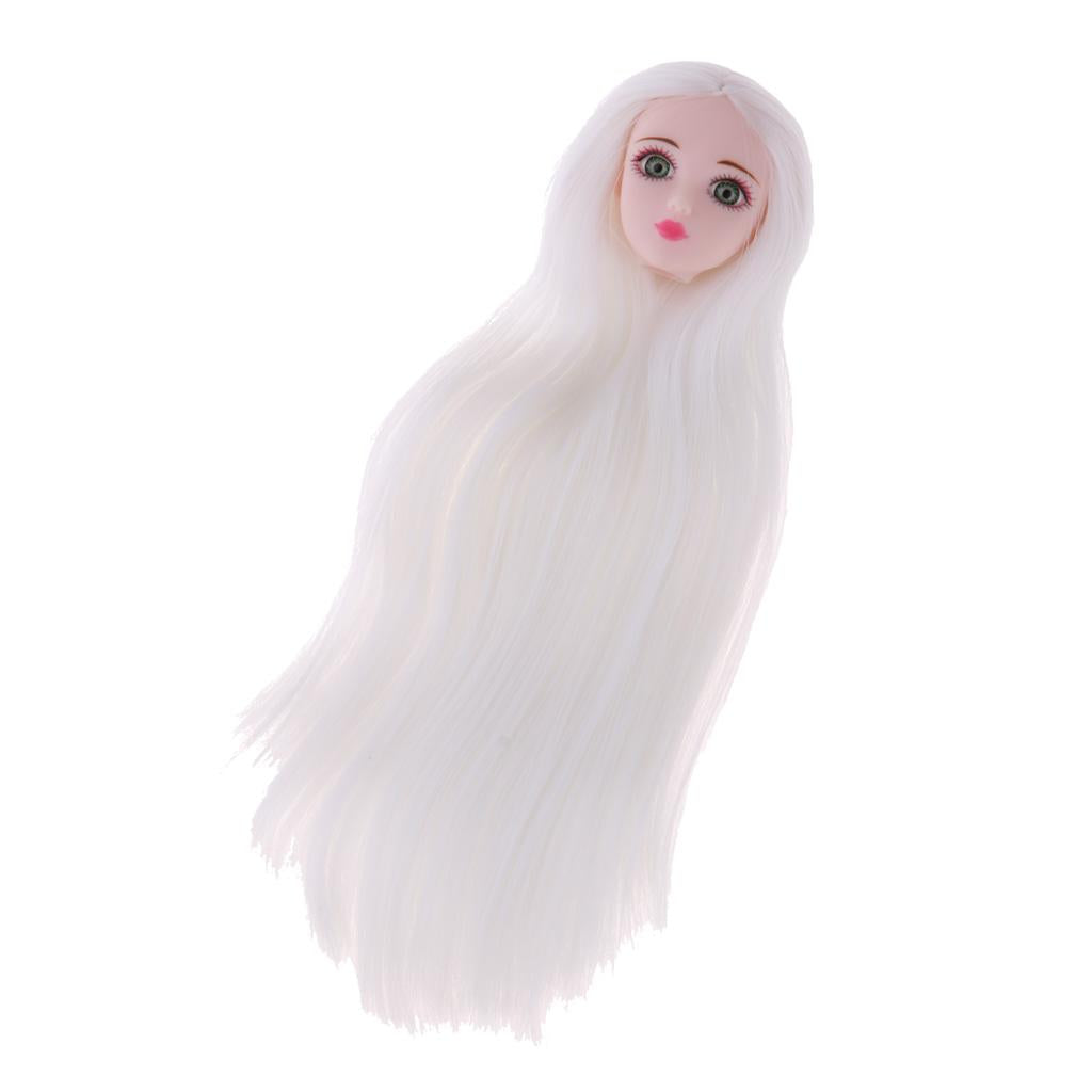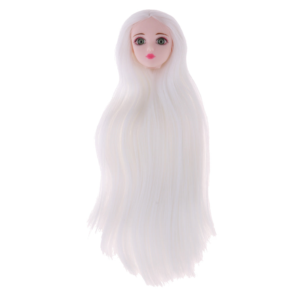1/6 female Bjd doll head sculpt with white straight hair wig and 3D eyes- make up