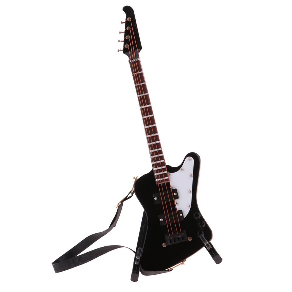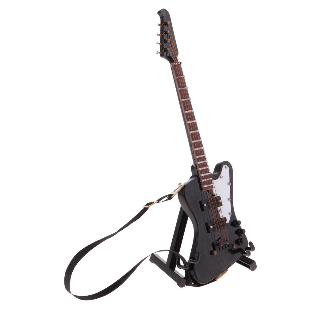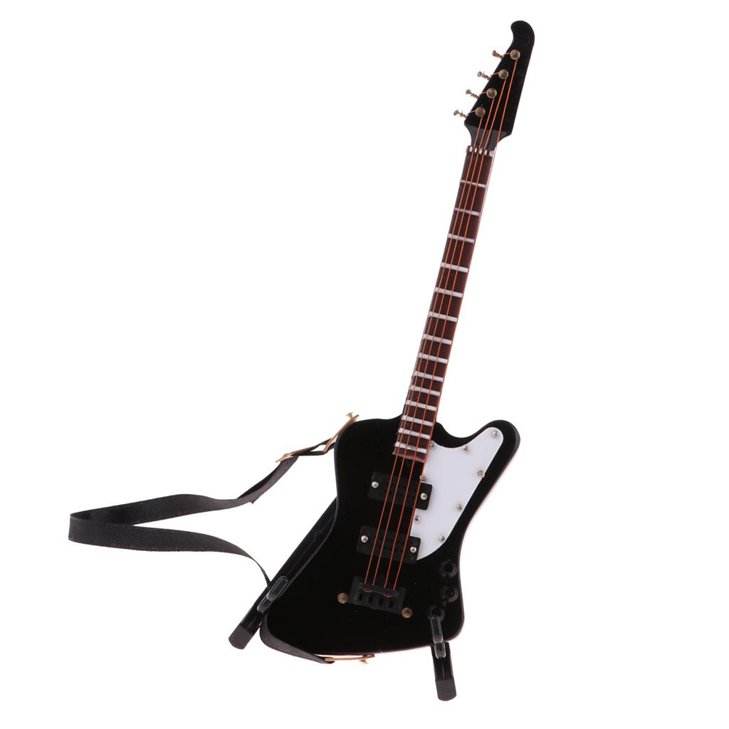 1/6 scale miniature wooden electric bass guitar with stand and strap musical instrument model kit for dolls house decor accessories